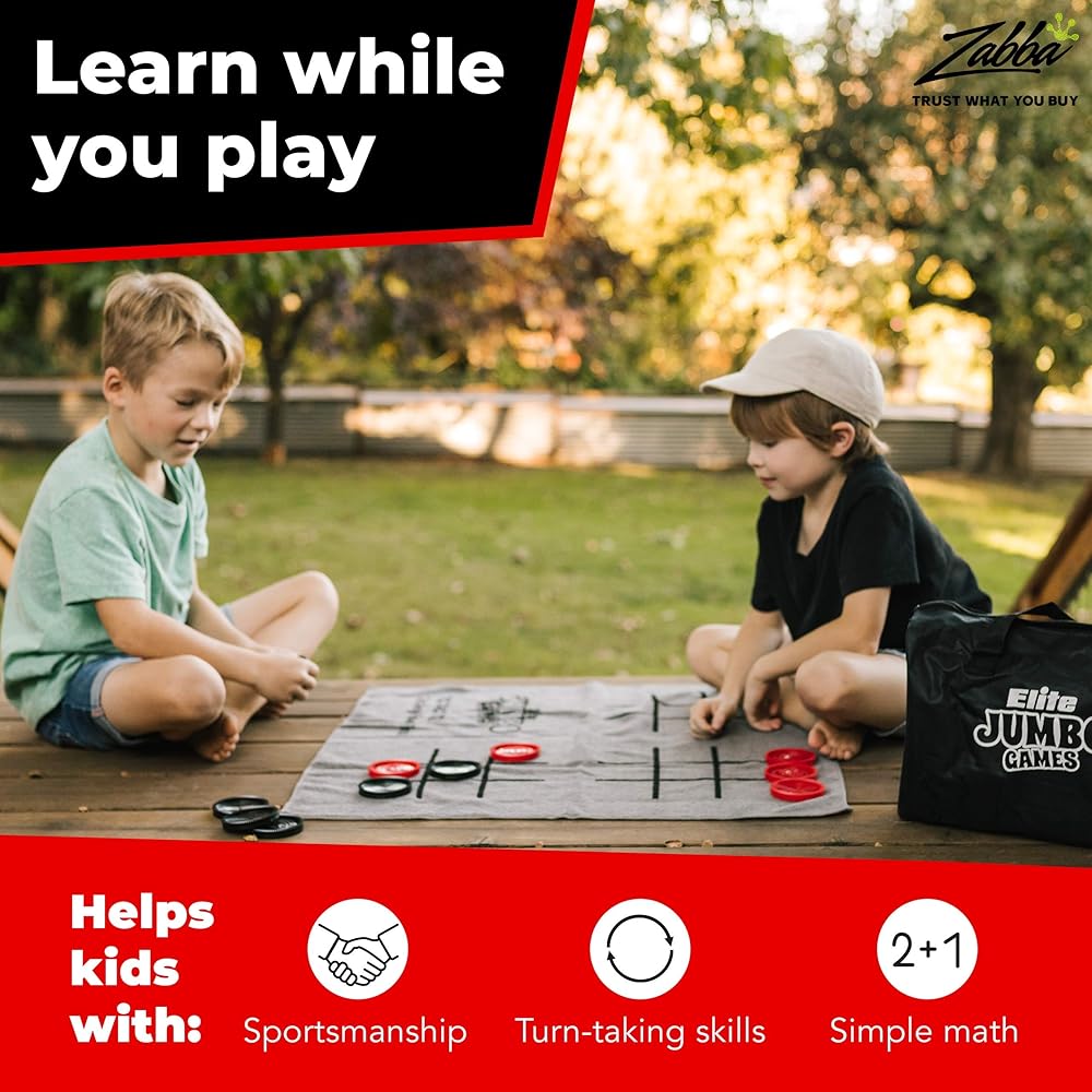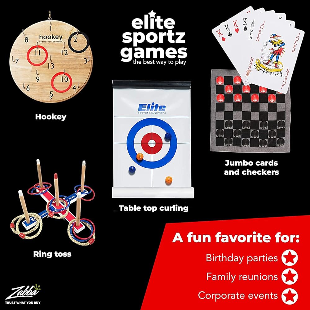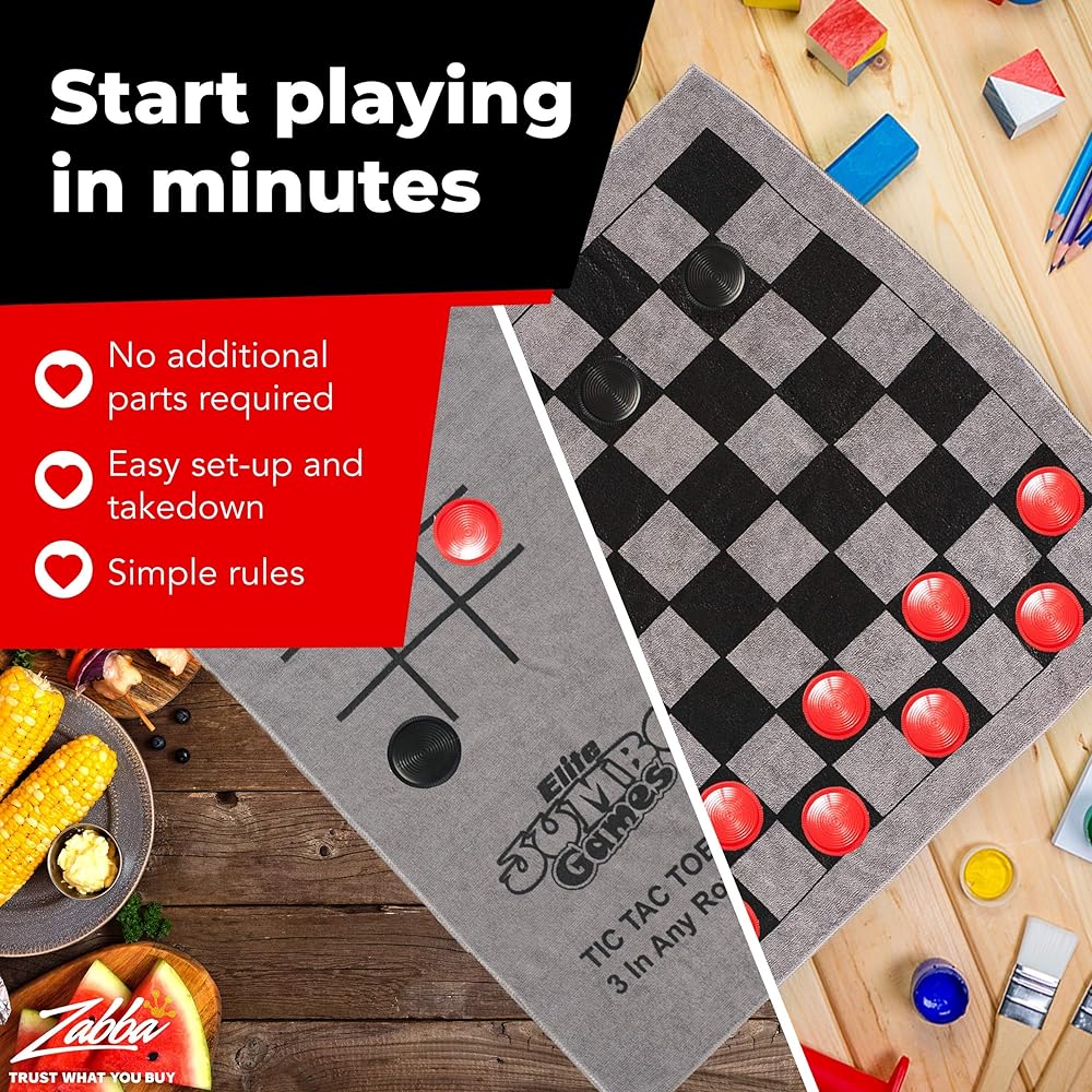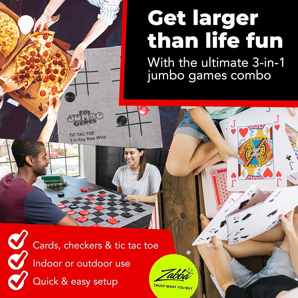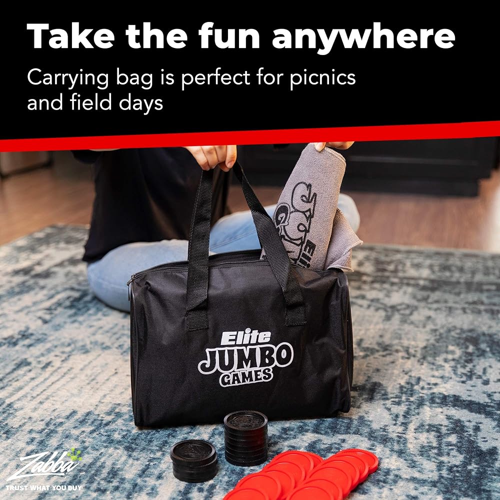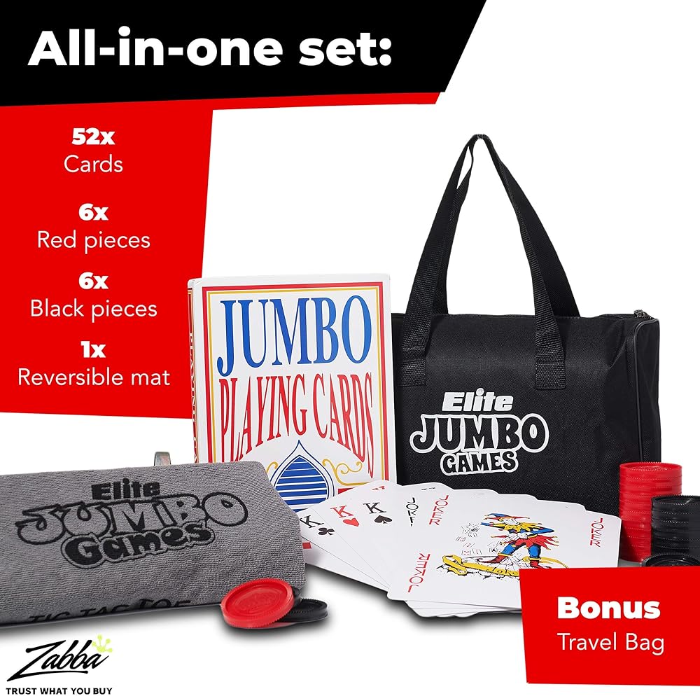 Elite Sportz Jumbo Playing Cards and Giant Checkers Combo - Giant Indoor Outdoor Yard Games for Kids, Tic Tac Toe and Large Cards - Durable Zipup Carry Bag for Storage