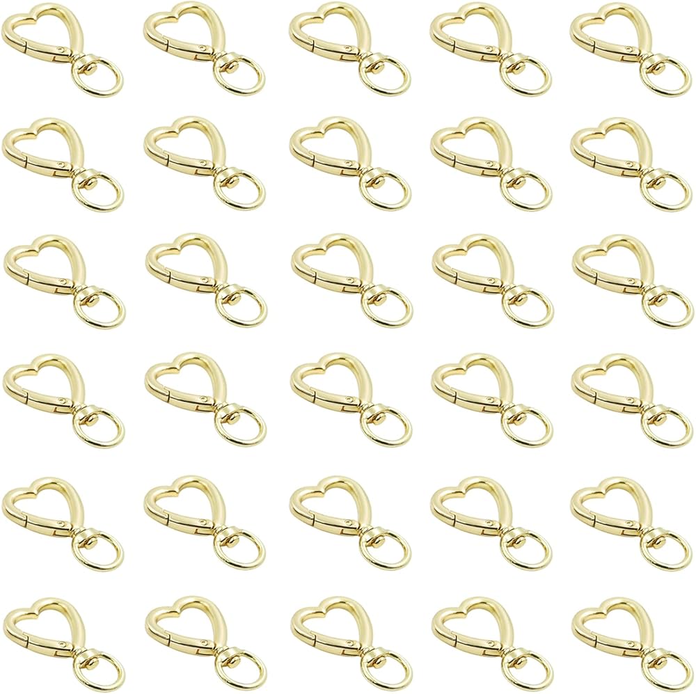 HAN SHENG 30 Pcs Heart Keychain Set with Spring Snap Hook - Graduation Gift for Her, DIY Key Rings for Keys Backpack Luggage Tag Bulk Charms Accessories (Light Gold)