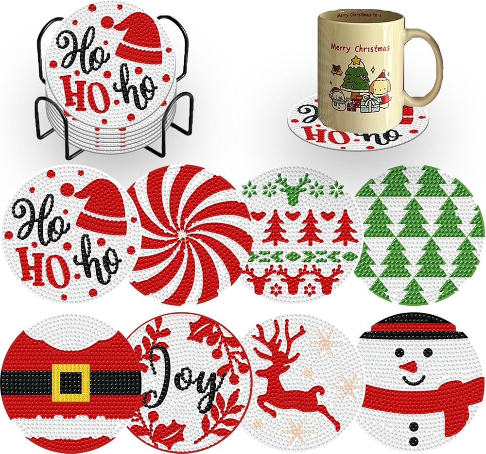 【Package Included】: You will receive 8 Christmas themed design diamond art coasters, 8 cork mats, enough colored diamonds, 1 clay glue, 1 pen and 1 diamond tray for your fall creation.