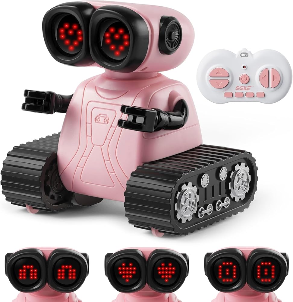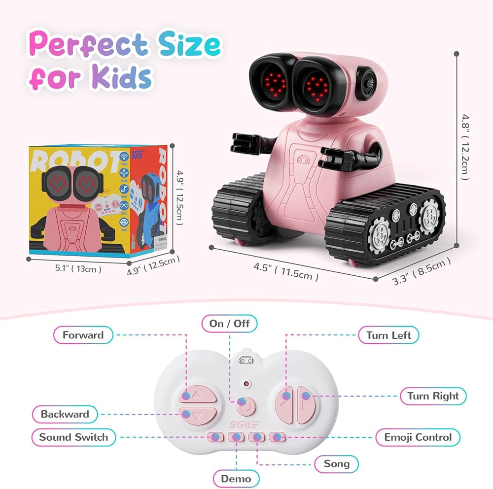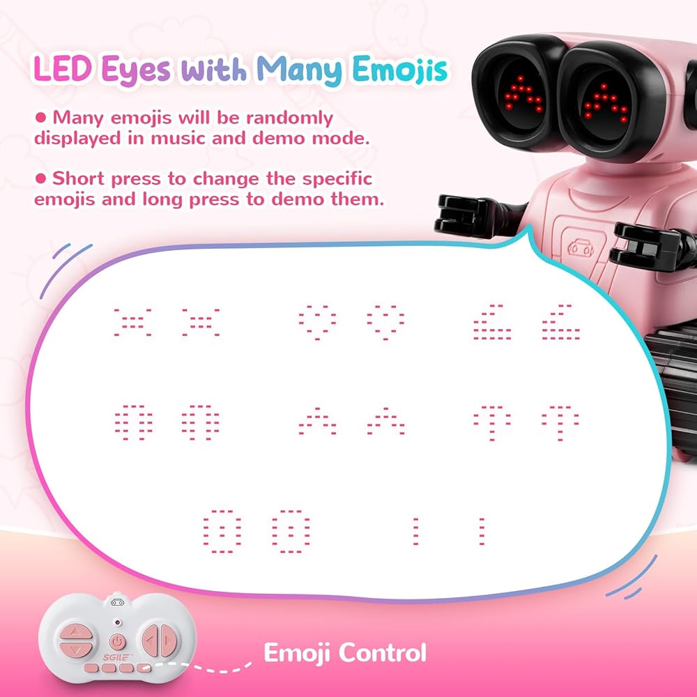 SGILE Remote Control Robot Toys with Music and Led Emojis Eyes, Auto-Demonstration, RC Rechargeable Emo Robots for Kids Age 3 4 5 6 7 Year Old Girls and Boys Gift Pink
