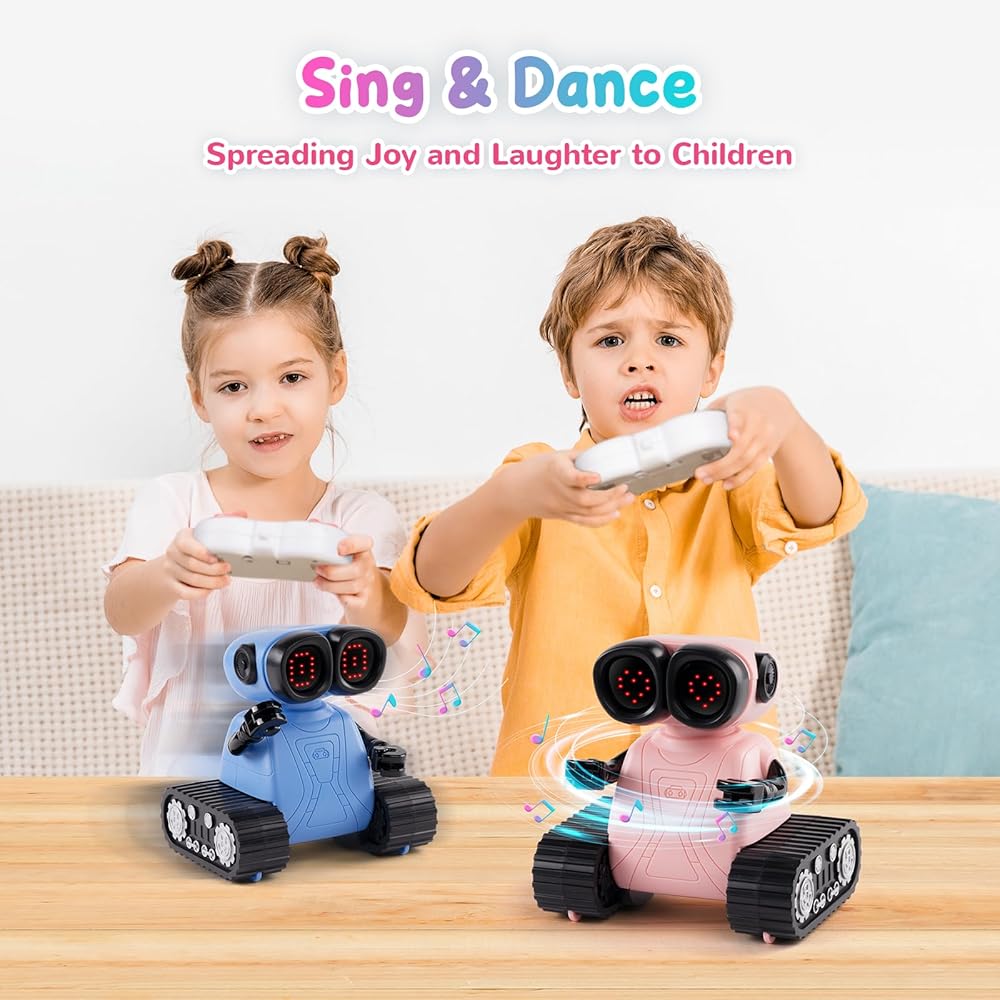 LED Eyes with Emoji Control: The remote control toy has LED eyes that can display many different emojis. In demo and music mode, these emojis will be randomly displayed. You can also use the emojis control button to switch between some specific emojis. This delightful feature adds an extra touch of cuteness to the robot, making it a beloved toy for kids.