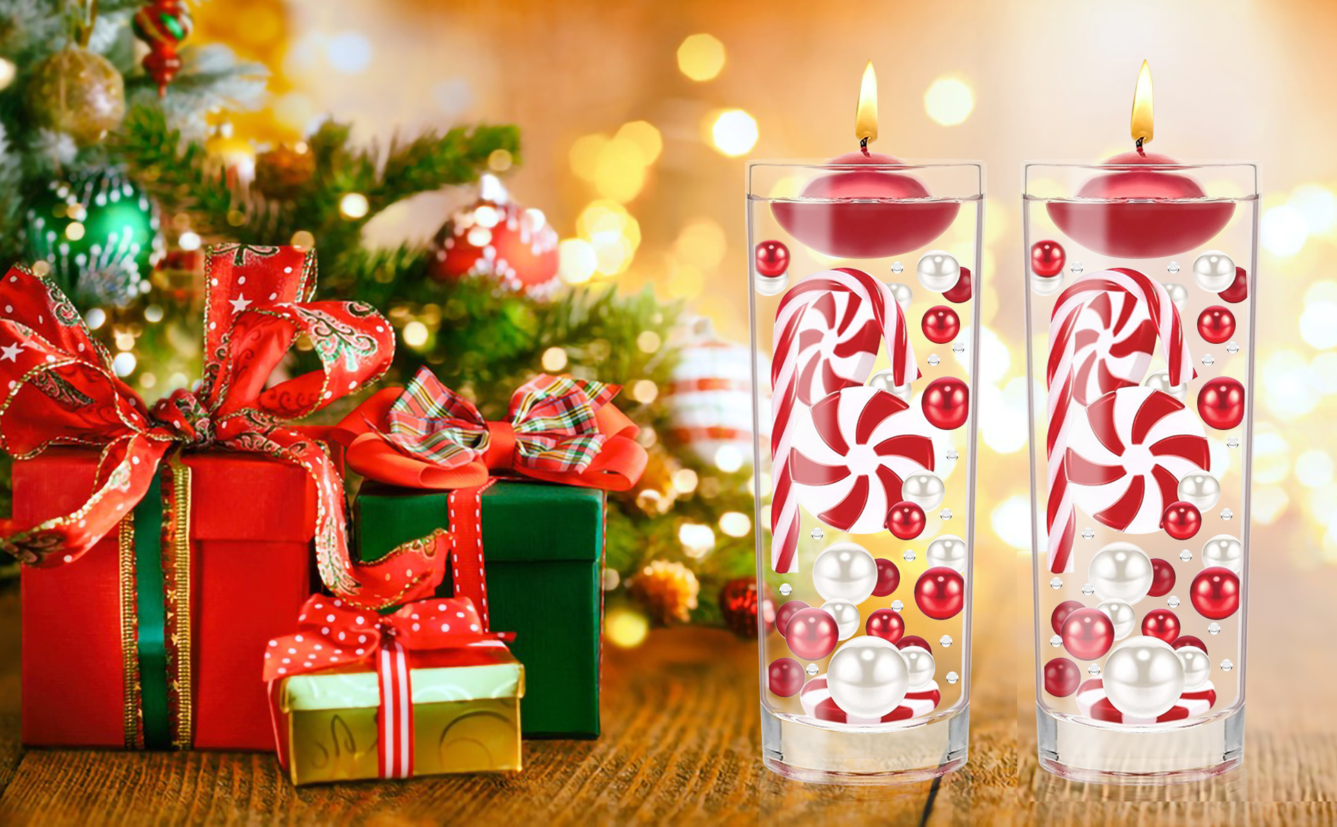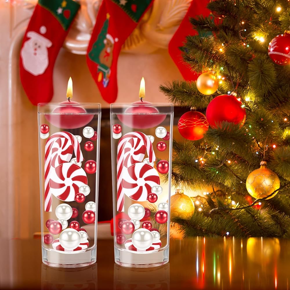 Package Includes: You will receive 6107 pieces Christmas vase filler. 76 pieces floating pearls, 31 pieces candy and crutch, and 1 bag of transparent water gels beads ( approx. 6000 pieces inside ).
