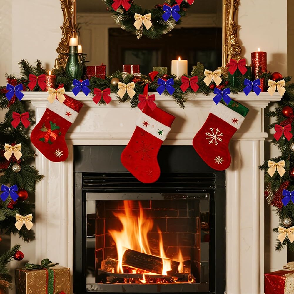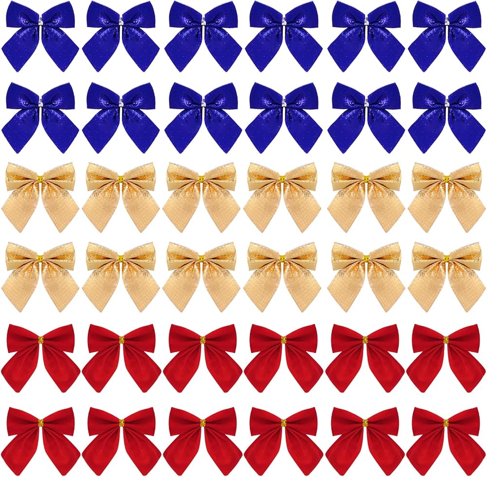 Unique Design: These ribbon bows are a little different in surface, red bows possess flannelette surface touchness, and the silver and gold possess shinning smooth appearance, a ideal color matching.