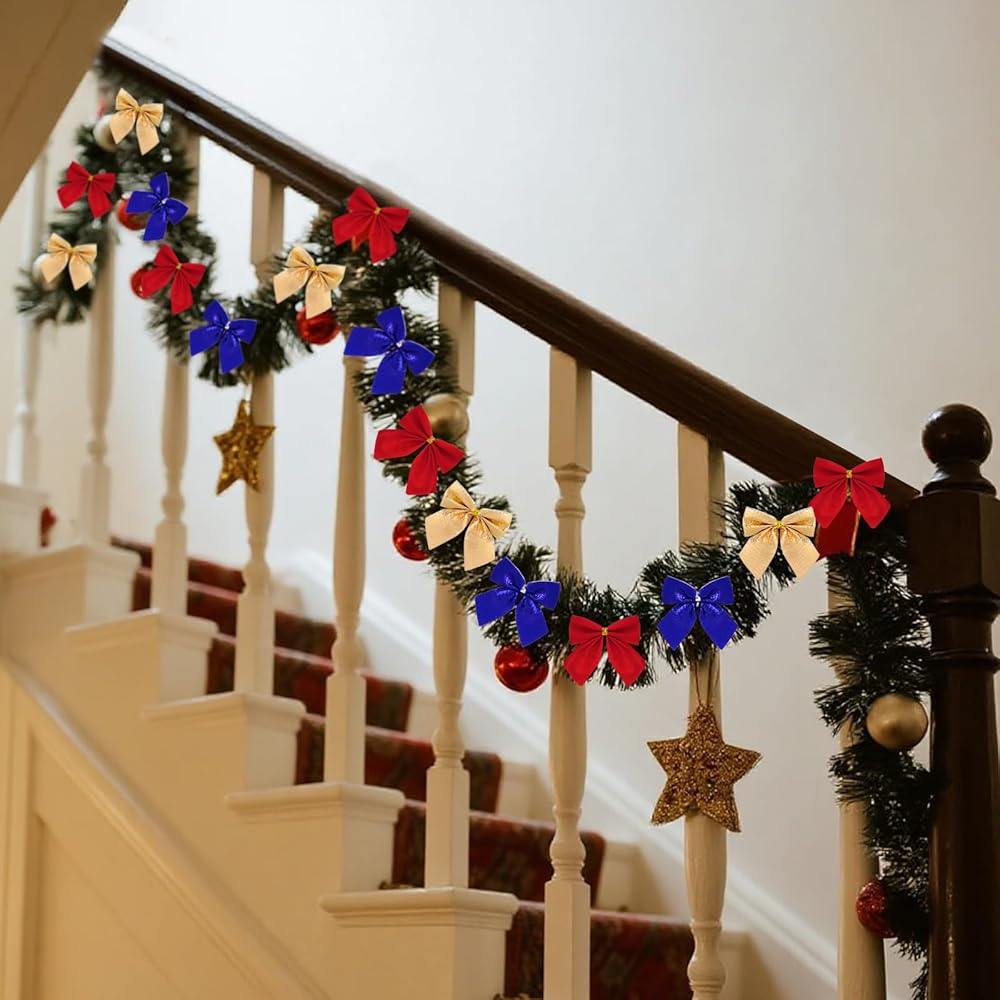 Received Quantity: Package includes 90pcs Christmas tree bows, which contains 3 different colors, gold, red, silver, each color 30pcs. Enough quantity for the coming Christmas decorating.