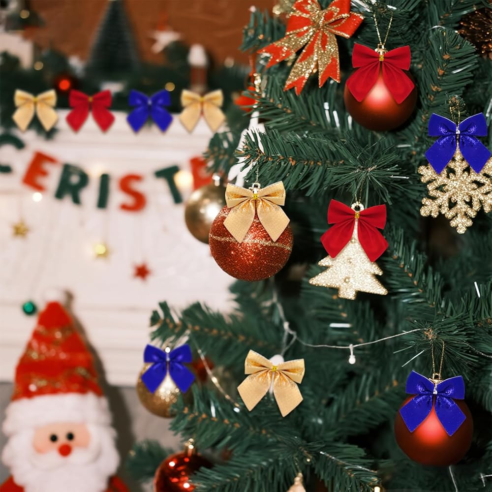 Tree Bows Dimension: 2.36 x 2.17 inch/ 6 x 5.5cm (L*W). Small size and light weight provide more using methods. Perfect for Christmas tree hanging, gift wrapping supplies. Please be aware of the product size before buying.