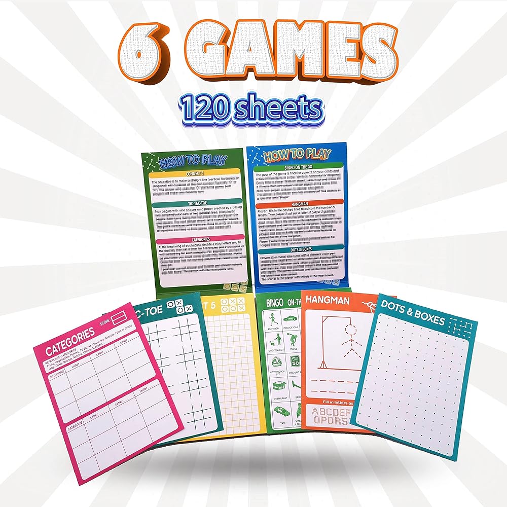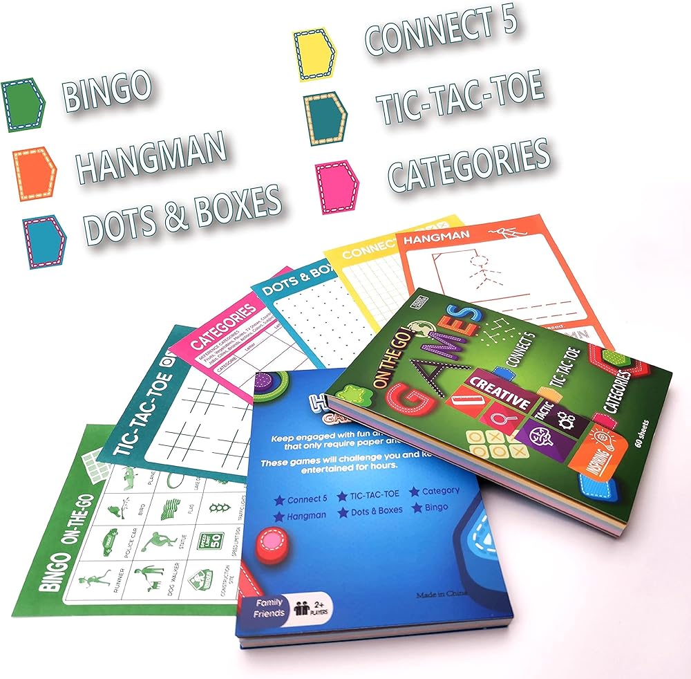 Fun to Play: 5 games cover Hangman, Dots & Boxes, Connect 5, TIC-TAC-TOE and Categories. Keep kids engaged that only require paper and pencils. These games will challenge kids and keep them entertained for hours.