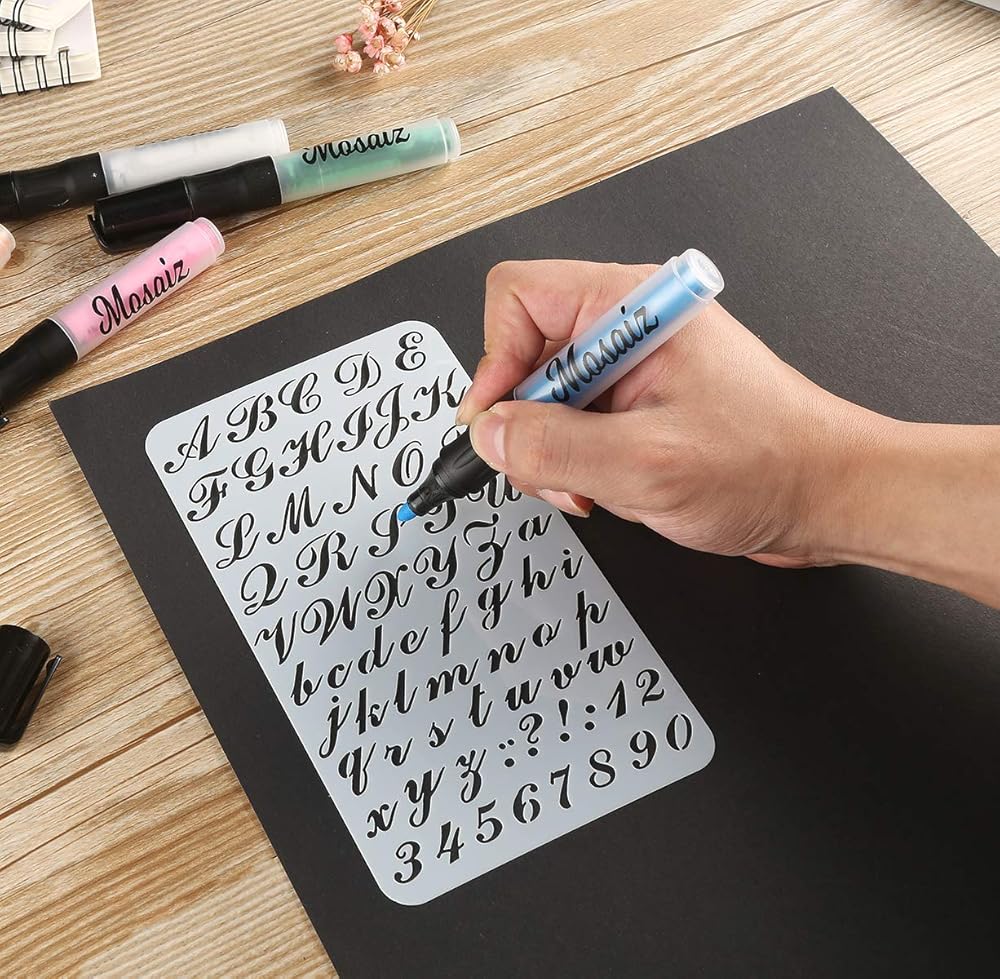 PREMIUM QUALITY - Our flexible lettering stencil sheets are 0.007 inch thick, durable enough and easy to use on any flat surfaces. Made of PET plastic material with no sharp edges which are safe for children, so it is also a kid stencils.