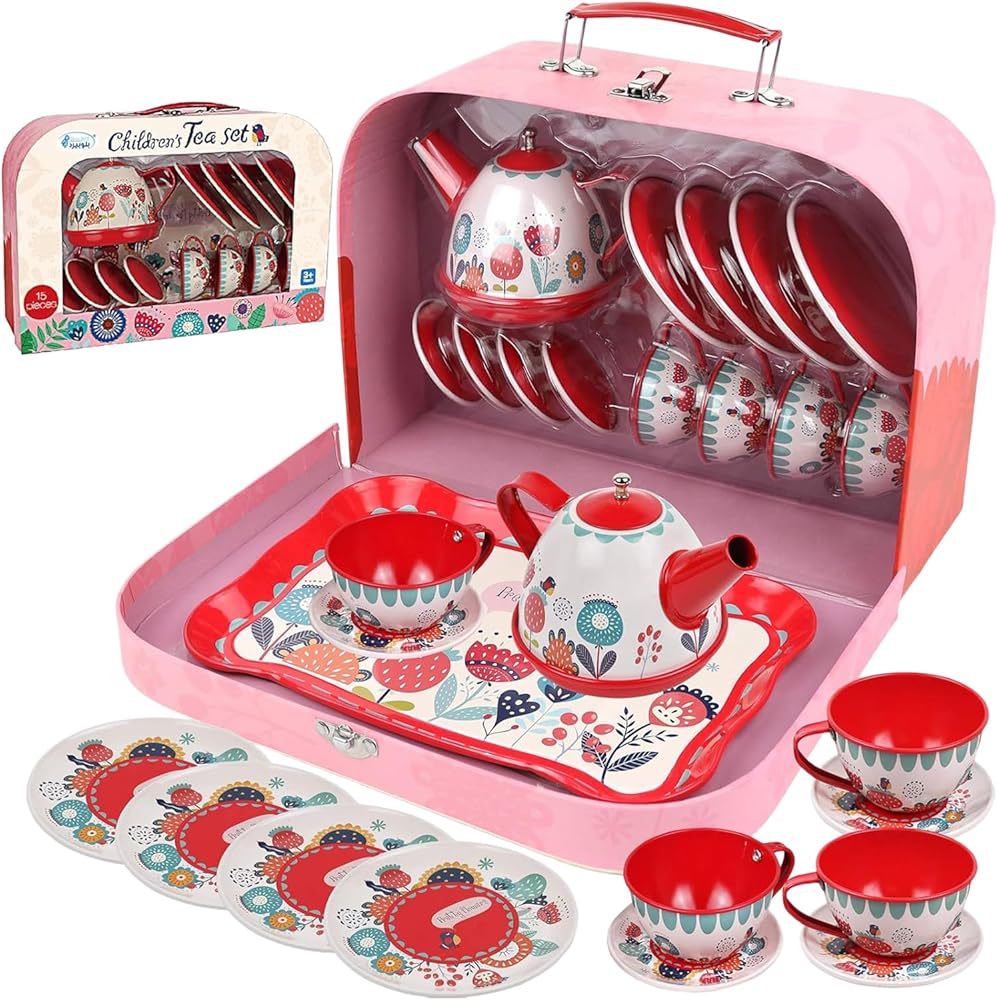 TEA PARTY TIME - This adorable Kids Tea Set is certain to be your little princess favorite gift! Designed for pretend play & is a fun way to boost imagination! Let them host an outdoor Magical Garden Tea Party!