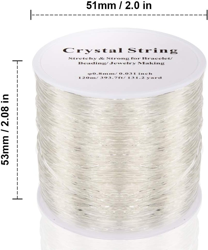 SPECIFICATIONS: The elastic bead string is 0.8mm in diameter and approx. 120m (393.7ft) in length per roll.