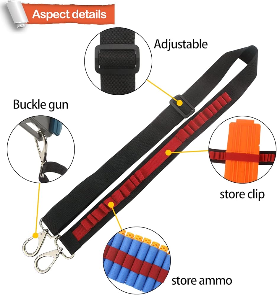 High Capacity Storage: Our bandolier can accommodate 1 Quick Reload Clip (not included) and up to 20 bullets (not included), ensuring you're always ready for action.