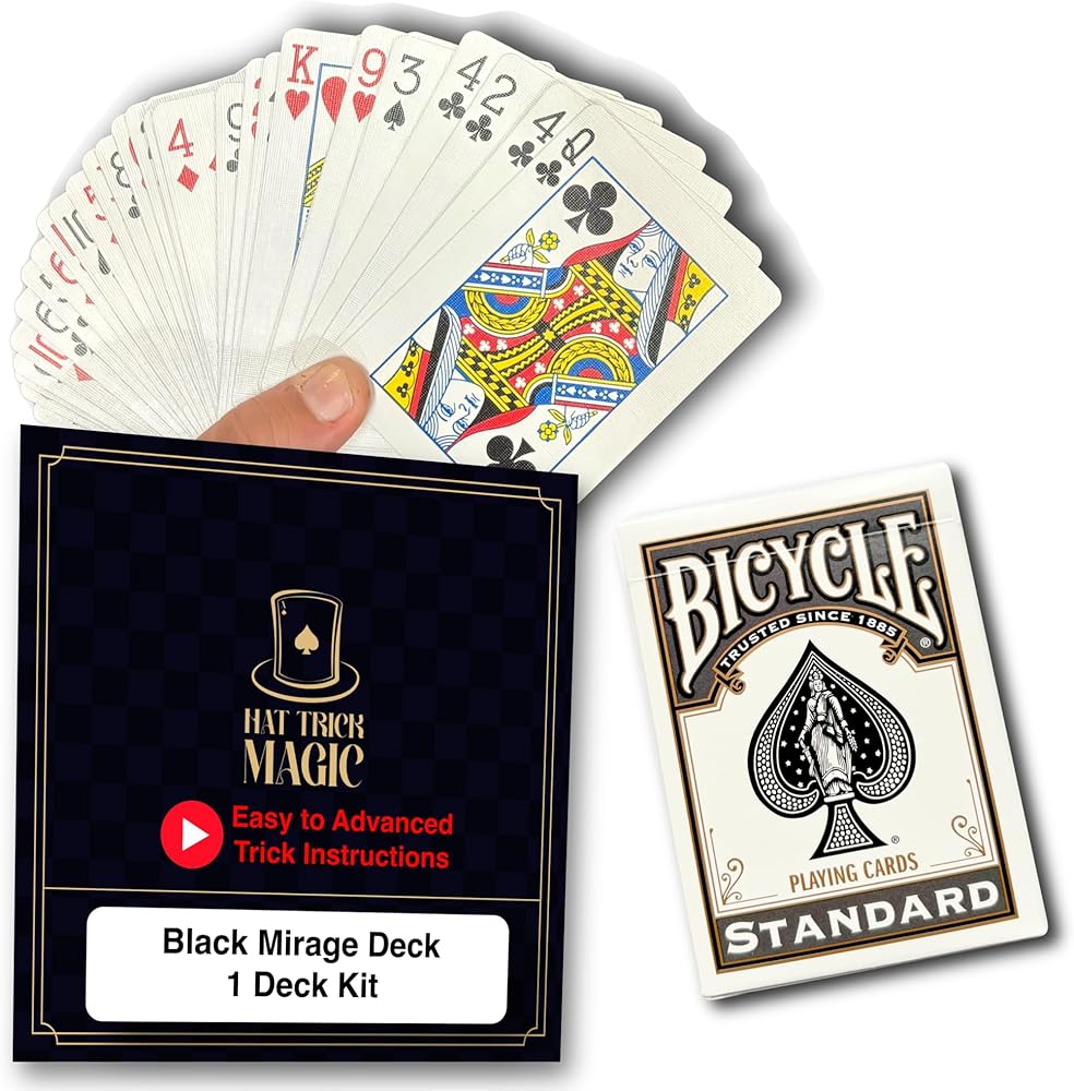 Step into the enchanting world of card illusions with Hat Trick Magic - Card Tricks Collection! Whether you are a beginner or a master illusionist, we have a perfect Hat Trick Magic - Card Trick for your next captivating performance! Mastering the art of card illusions has never been easier. Our tricks are designed to be accessible to all, requiring no prior experience! and with the included video resources, you can learn these mesmerizing tricks in less than 15 minutes. As a special bonus, we'll also teach you extra tips and bonus tricks to add even more magic to your performances with the special deck provided! Prepare to astound your audience as you make real Bicycle Cards appear, teleport, and transform right before their eyes using the meticulously crafted art of illusion! With any of these magic sets, learn the techniques behind tricks with cards, including illusions that use that use short cards, tapered cards, and treated cards with blank faces, blank backs and standard cards. Also includes video demonstrations of each trick. Turn into a master magician with the Hat Trick Magic Card Illusions Kit! With this magic kit, you will be able to: Make cards appear and disappear, , transform cards from blank to printed and back again, make cards move to the top of the deck; amaze audiences with optical illusions; perform a wide variety of sleight-of-hand card tricks; magically find certain cards in the deck; and learn about the fascinating secrets behind the tricks to perform an unforgettable magic show! The kit contains instructions but also contains a special link to online video instructions, provided by a professional magician! He provides the secrets behind each trick, showing the step-by-step techniques needed to successfully perform each illusion. He also gives performance tips so the magician can refine their magic skills!