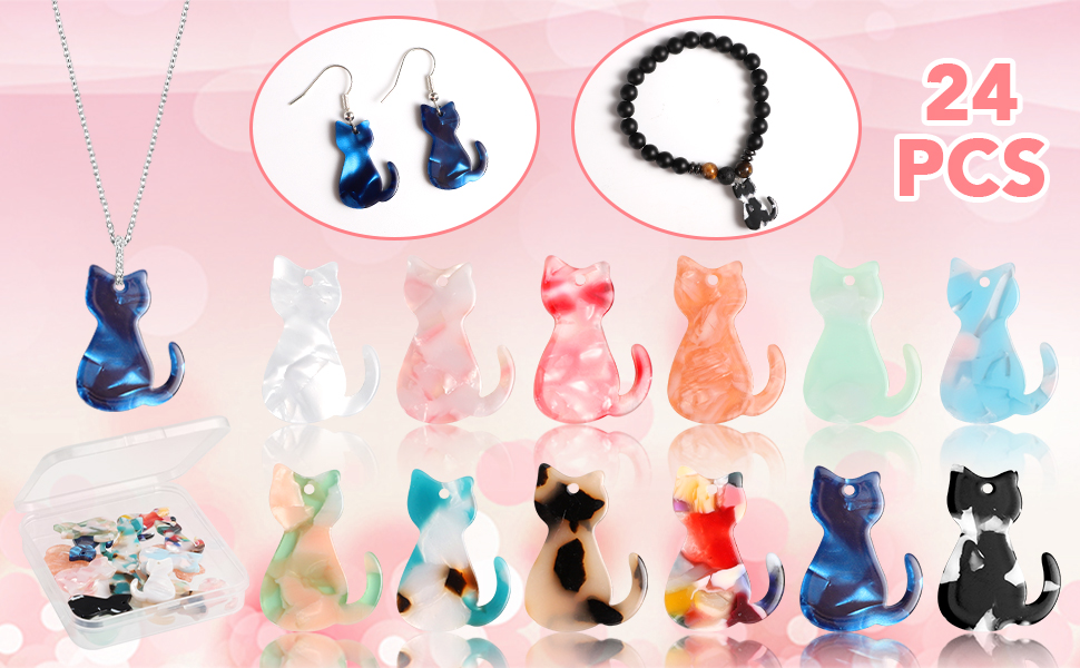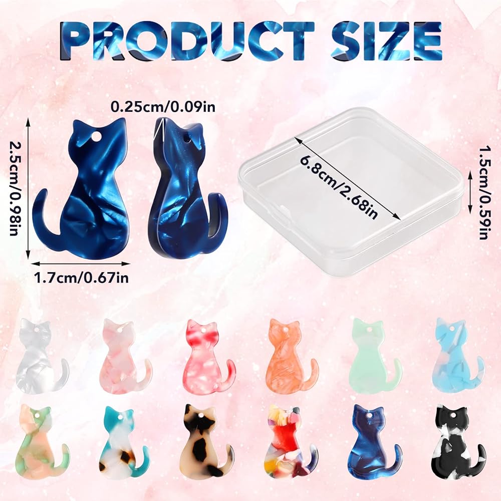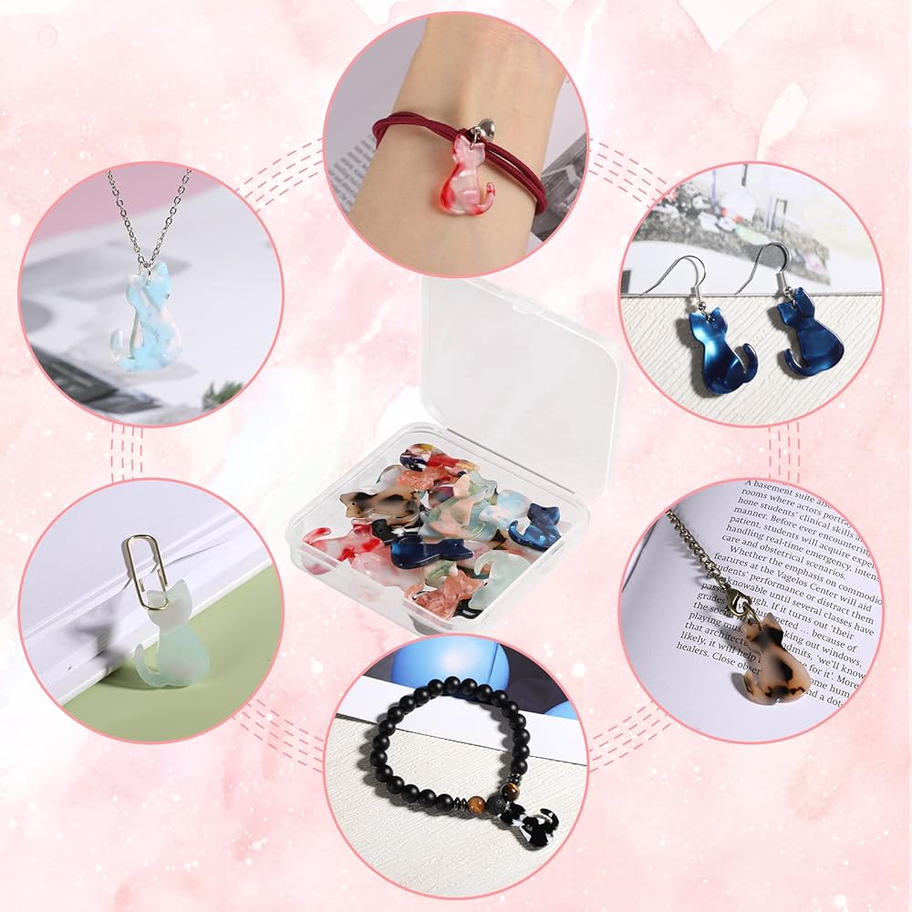 【Various Colors and Patterns】: You will receive our cat charms for jewelry making . There are 12 colors of cat charm accessories, and 2 pieces of each color, for a total of 24 items in a transparent storage box that will be delivered to you.