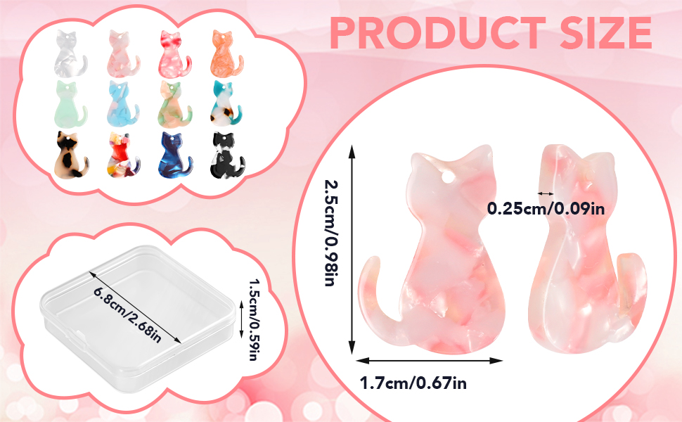 【Product Size】: These accessories have cute designs,each cat charms measures is 2.5 x 1.7 x 0.25 cm/ 0.98 x 0.67 x 0.09 inches, and the transparent storage box measures is 6.8 x 6.5 x 1.5 cm/ 2.68 x 2.68 x 0.59 inches.