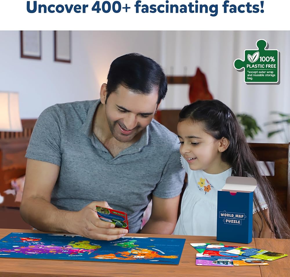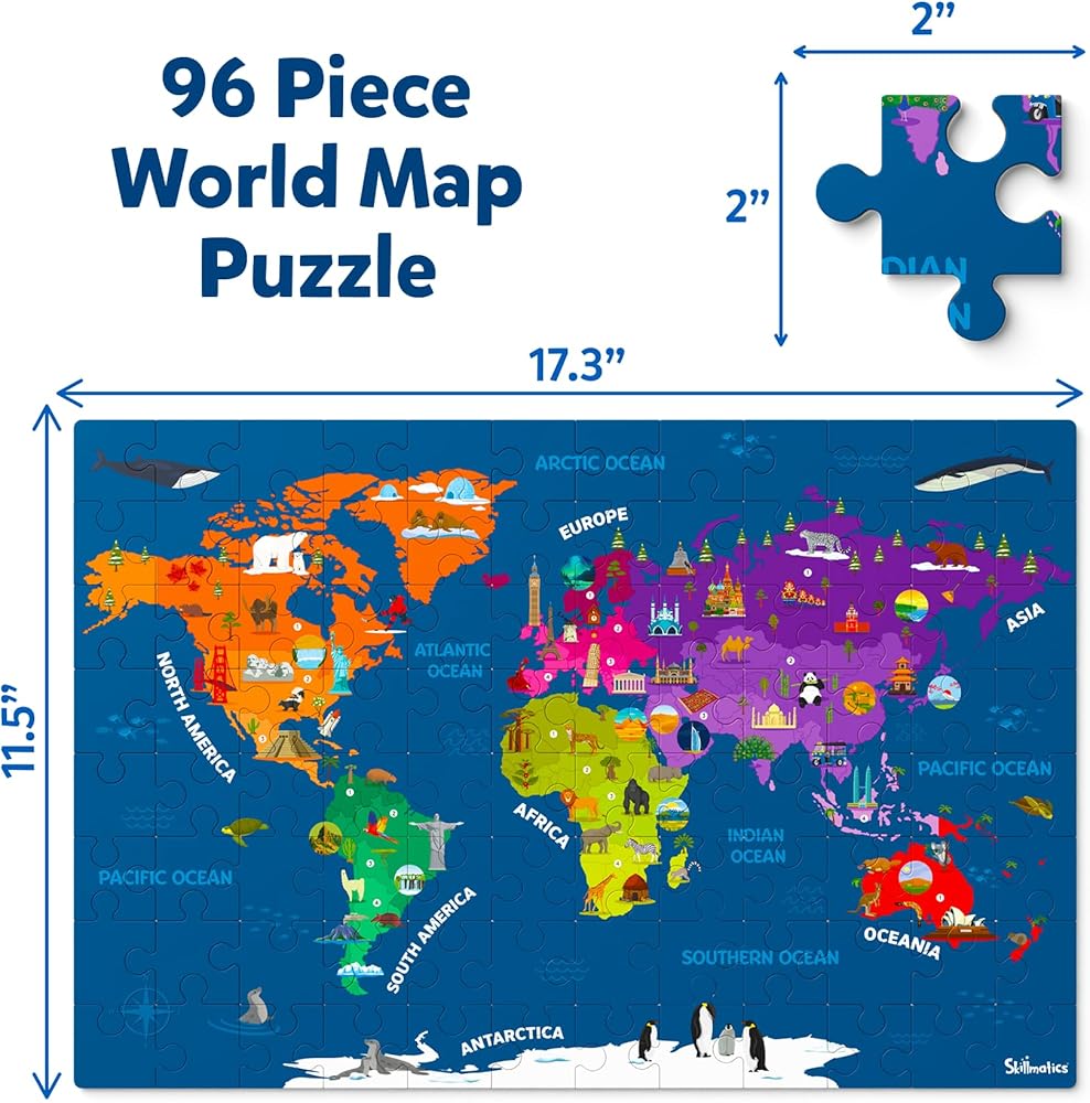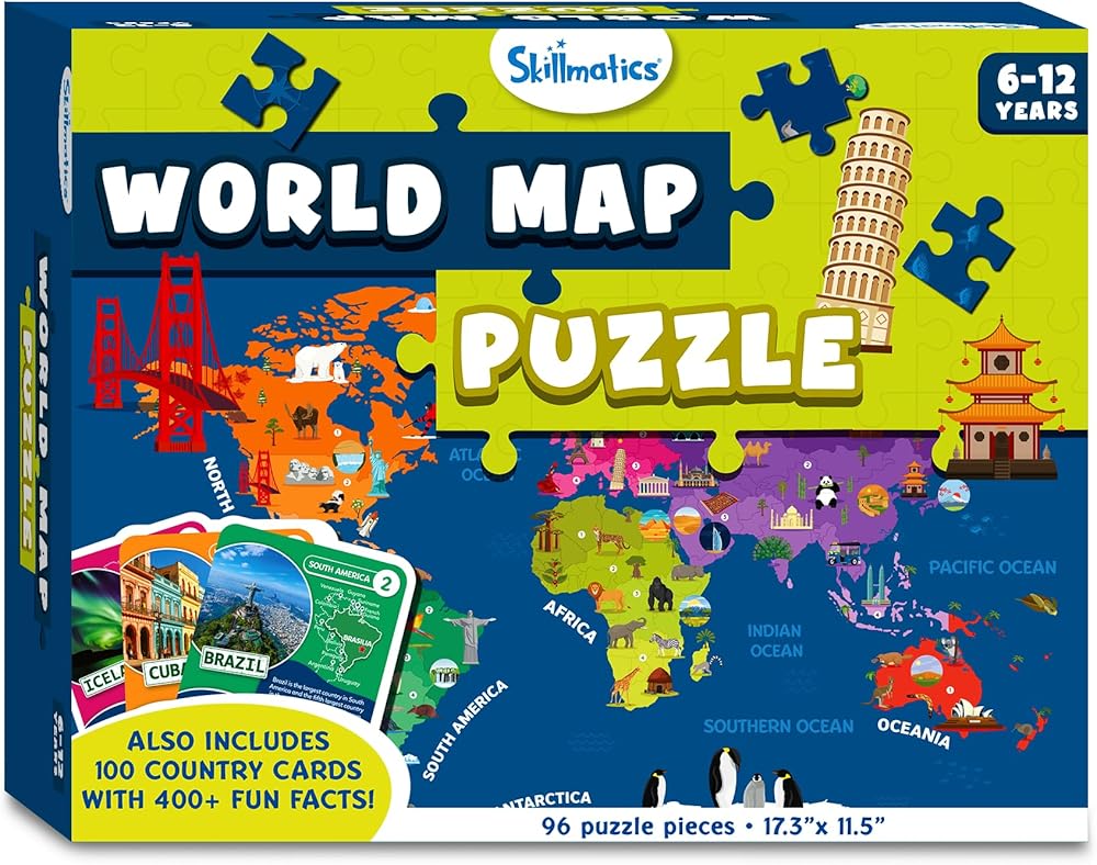 INDEPENDENT OR COLLABORATIVE PLAY: Build and explore the map puzzle on your own, or play with friends and family to see who can learn the most!