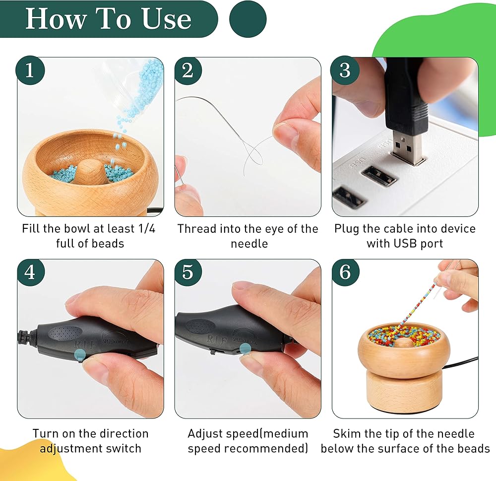 Efficient Beading: The beads automatically pass through the curved needle when the spinner is turned on and the needle is at an angle. This is an amazing time, hand and eye saver for all jewelry crafters
