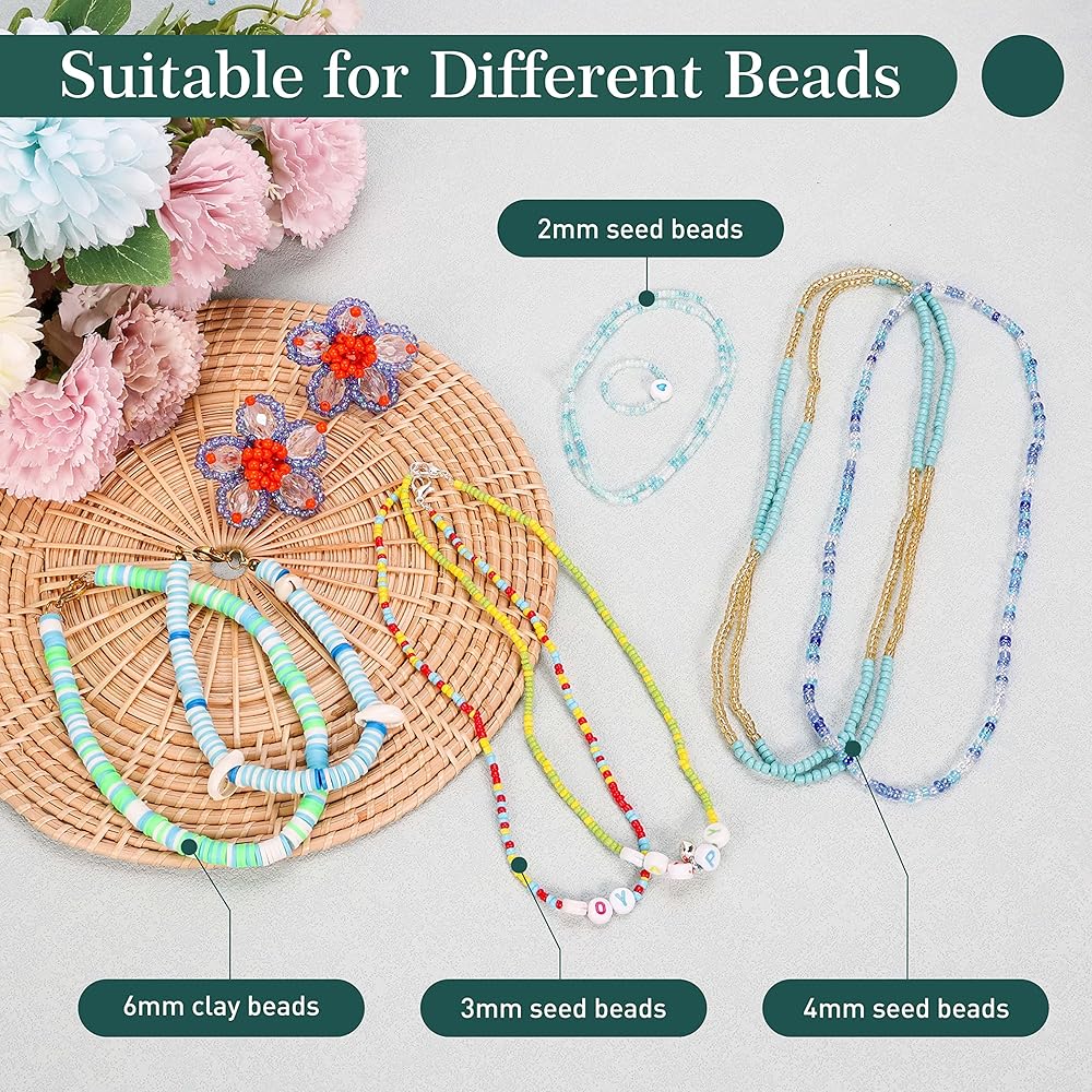 Complete Beading Set: 1 x 3.5 inch electric bead loader, 2 x large eye beading needle, 18000 x 2 mm seed beads (18 color), 20 x lobster clasps, 50 x open jump rings, 2 roll threads, can completely meet your beading needs