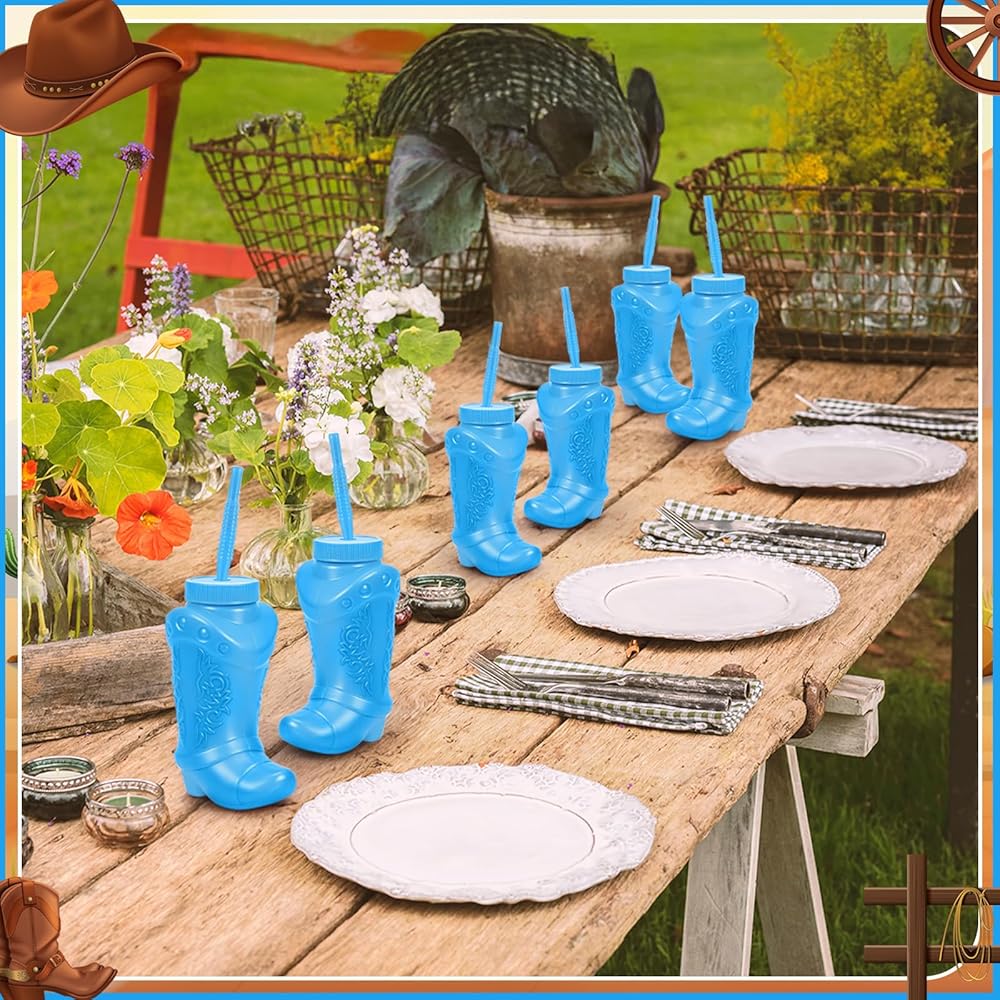 Practical Design: each cowboy boot cups is equipped with a straw that is long enough to reach the bottom of the cup, so that children can easily finish the water or beverages in the cup without wasting or spilling