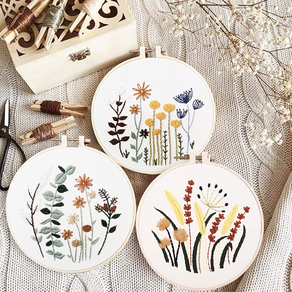 【UNIQUE CUTE DESIGNS- BEAUTIFUL FLORAL PATTERN】We offer 3 different styles of embroiderypatternwill let you to experience more technique of embroidery and enjoy it. You can followa very detailed instructionsin package.