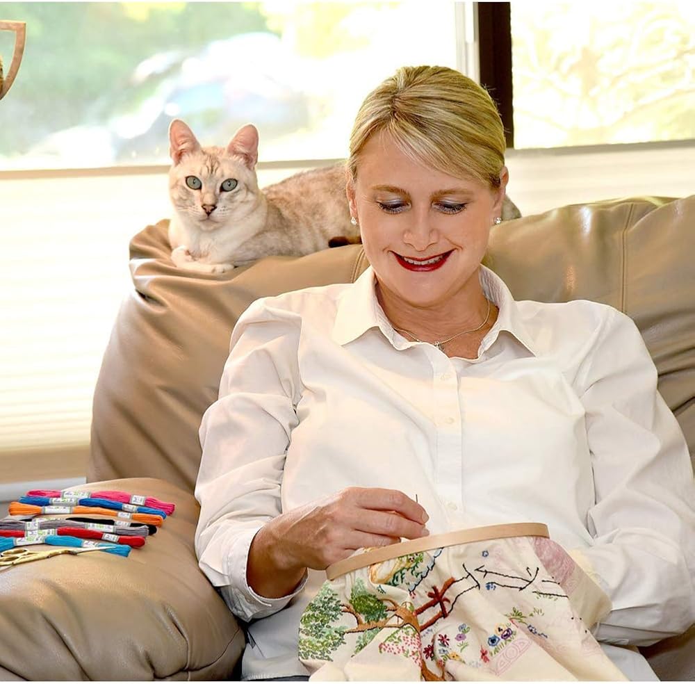 【PLASTIC MATERIAL HOOP WON'T HURT HANDS】Come with 3embroidery hoops,they smooth and safe.Plastic material hoop will not like bamboo to pierce finger.Every embroidery hoop has a adjustment screw that you can tighten to keep the fabric tight.