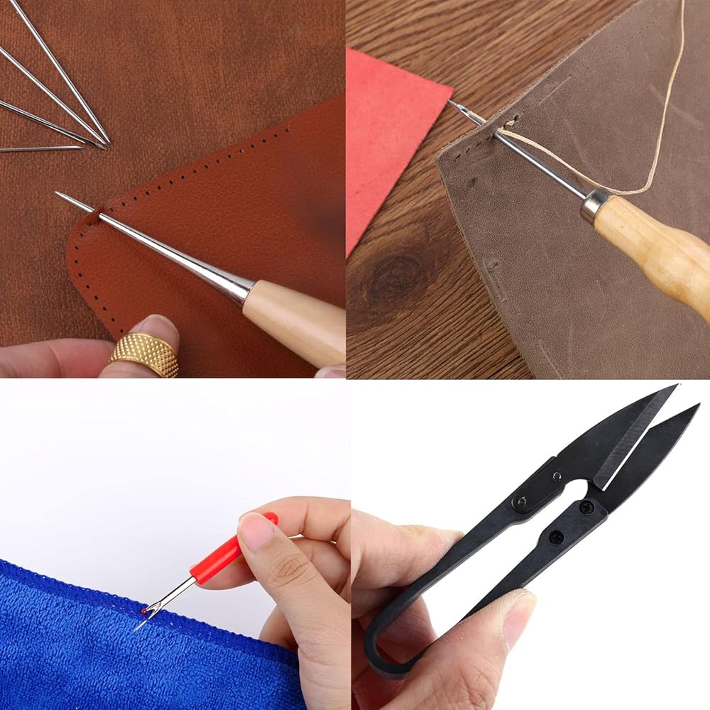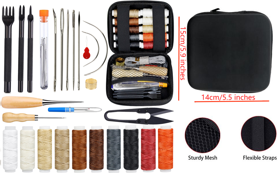 Wide Application Range: You can sew wallets, tents, denims, sofas, car seats, sacks, carpets, coats, etc. with this leather sewing kit. With this leather craft repair kit, you can quickly find the tools you need to complete your DIY project, which is convenient and quick.