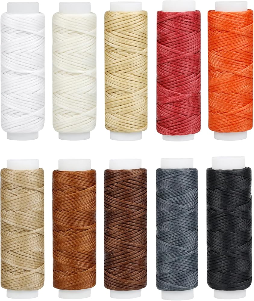 Sewing Wax Thread: Made of high-quality materials, moderate wax amount, not easy to deform, and durable. Ten colors of wax thread are included in the leather craft repair kit: natural color, black, dark coffee, natural white etc. Each color is 12 meters, and the total length is 120 meters, which is enough to meet your sewing needs.