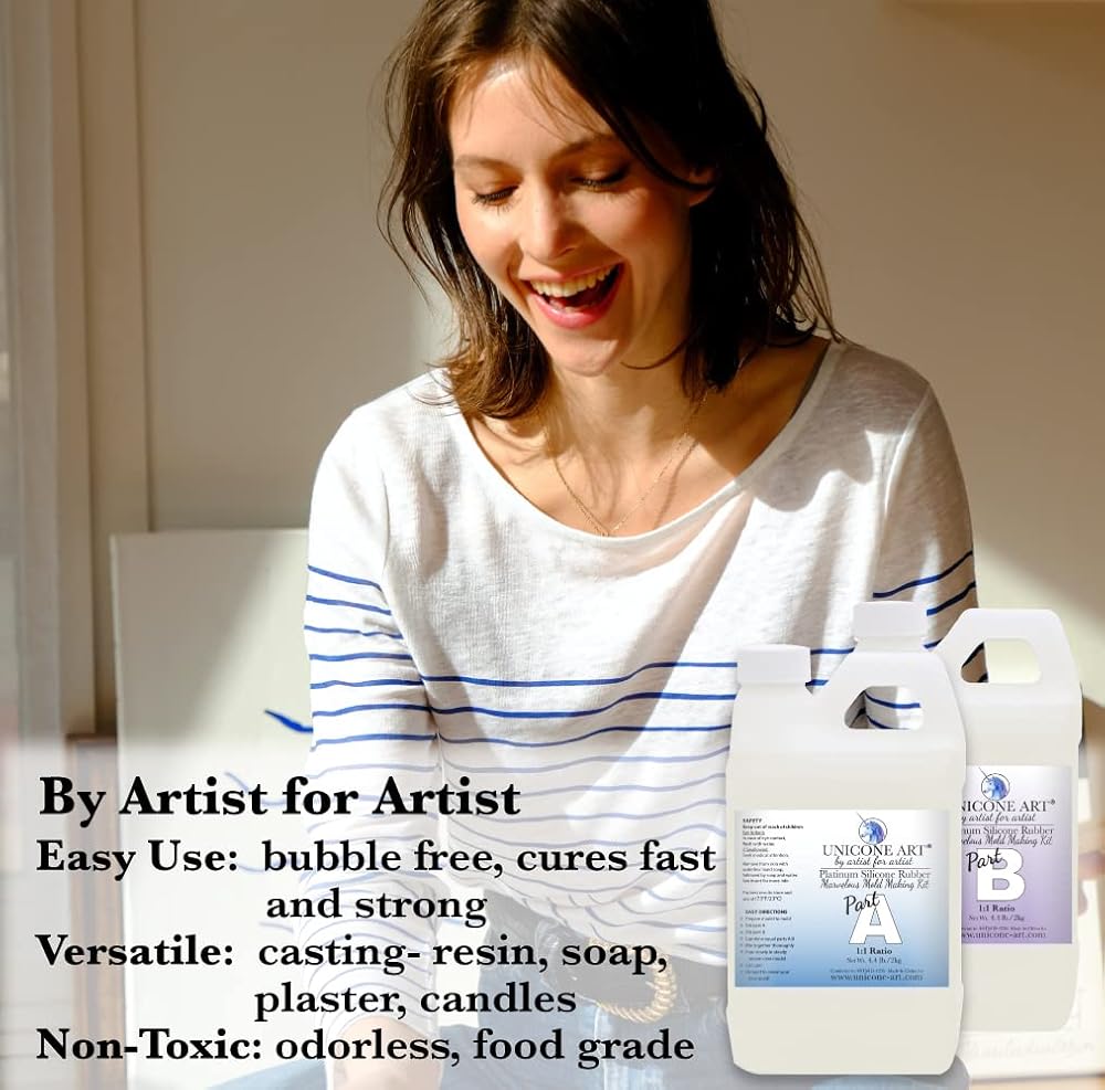 • {Created by Artist for Artist} تم تطوير السيليكون الفني Unicone على يد فنانين يفهمون المتطلبات الفريدة للحرفيين. تركيبة منخفضة اللزوجة خالية من الروائح لجلسة حرفية مريحة. السيليكون البلاتيني الشفاف المخصص للحرف اليدوية، خالٍ من مادة BPA، وخالي من المركبات العضوية المتطايرة، ويمكن استخدامه في الصب مرارًا وتكرارًا.
