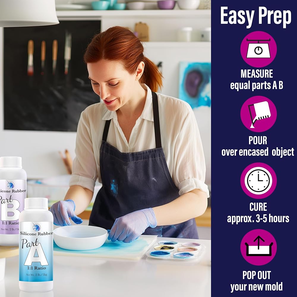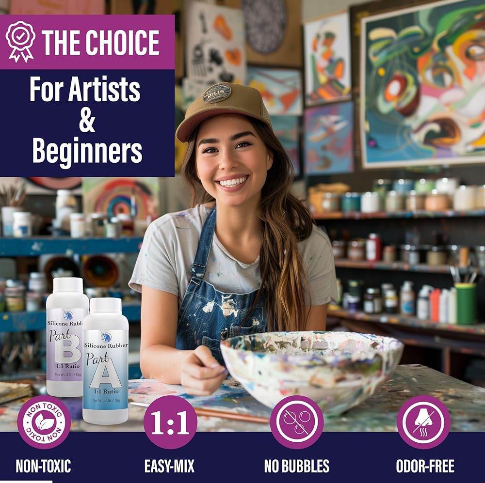 • {تركيبة سيليكون سائلة غير سامة} تعتمد على البلاتين، صديقة للبيئة وعديمة الرائحة. آمن للاستخدام المنزلي. مجموعة قوالب السيليكون الشفافة مع صلابة الشاطئ 15A، ذاتية التفريغ، تركيبة منخفضة اللزوجة. وهذا يعالج منتجًا نهائيًا متينًا ومرنًا ومقاومًا للتمزق. لا توجد تركيبة فقاعية ولا حاجة إلى وعاء ضغط لإزالة الغازات.