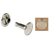 Nickel free. Extra Small: Cap 1/4" (6 mm), Post 3/16" (5 mm), Base 1/4" (6 mm)Small: Cap 1/4" (6 mm), Post 1/4" (6 mm), Base 1/4" (6 mm)Medium: Cap 5/16" (8 mm), Post 5/16" (8 mm), Base 5/16" (8 mm)Large: Cap 5/16" (8 mm), Post 1/2" (13 mm), Base 5/16" (8 mm)Steel. When only the best will do, these rivets offer the finished look that only double cap rivets can. Use setter #8100-00 and anvil #8056-00 or setter kit #8105-00.