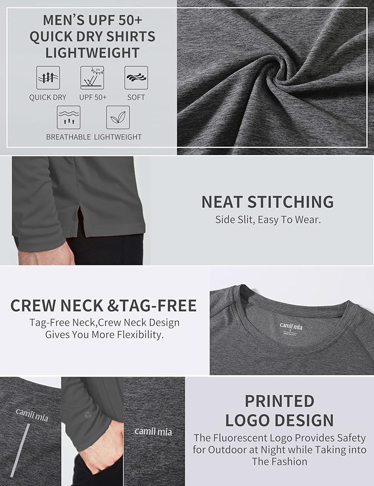 Comfortable Design: Our regular fitted men's upf 50 long sleeve men t-shirts feature long sleeves which can provide a full range of motion for both arms. It also includes a tag-free collar and flatlock seamlines to reduce chafing which can improve comfort and skin-friendly