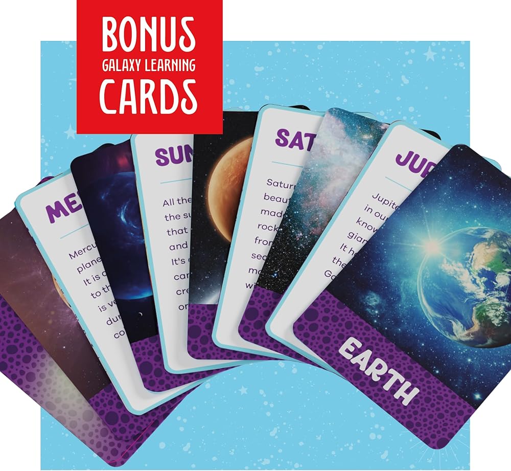 Bonus Learning Cards: Dive deeper into the mysteries of our solar system with 9 detailed galaxy cards. Each card is dedicated to a planet on the puzzle, bursting with fascinating facts that fuel curiosity and knowledge.