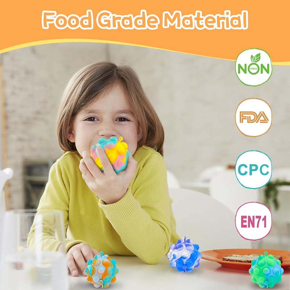 It Pop Party Favors Fidgets Ball Toys: The squishy fidget its toy pack kid party favors for kids 8-12 is made of durable safe silicone toddler party favors for kids 3-5 to play. Stress balls party favors adults are not easily deformed. Get this party favor toys fidget party favors for teens boy party favors for kids 8-12 bubble party favors for kids party bag stuffers for kids party toys, adult toys pop fidget party favors fidget toy party favors baby gifts bouncy balls cool toys.