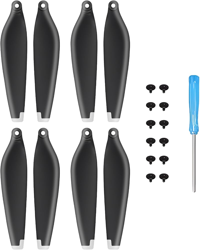 Easy to install: This mini 3 pro/Mini 4 pro propellers set comes with a mini screwdriver and screws, allowing you to easily remove and install the propeller.