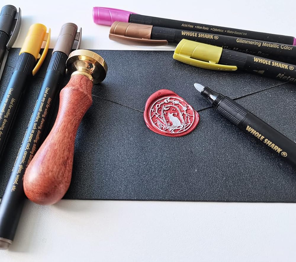 You can write what you want in gift cards or letters with this metallic marker pens, meanwhile you can choose the color pen make your wax sealing more attractive. what's more, it also can make a sign in the wood and glass.