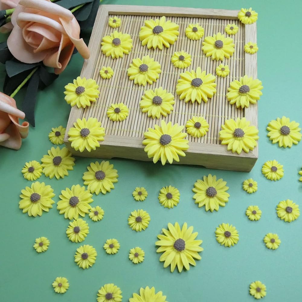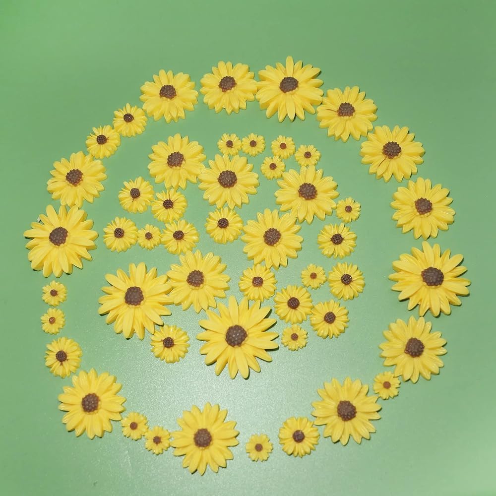 HADDIY Resin Sunflower for Craft,50 Pcs Small Flatback Yellow Decorative Daisy Flowers for Scrapbook Embellishment,DIY and Sunflower Party Decorations-No Hole