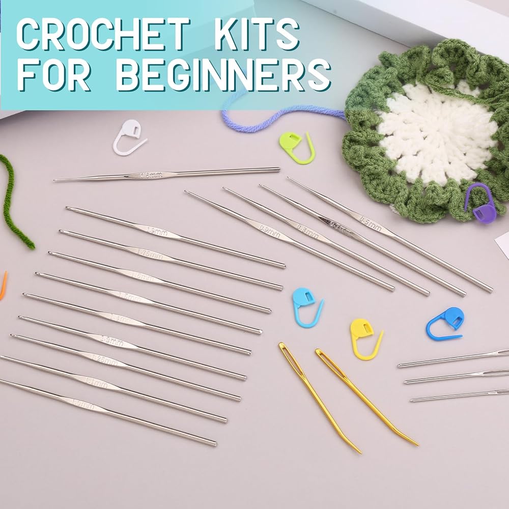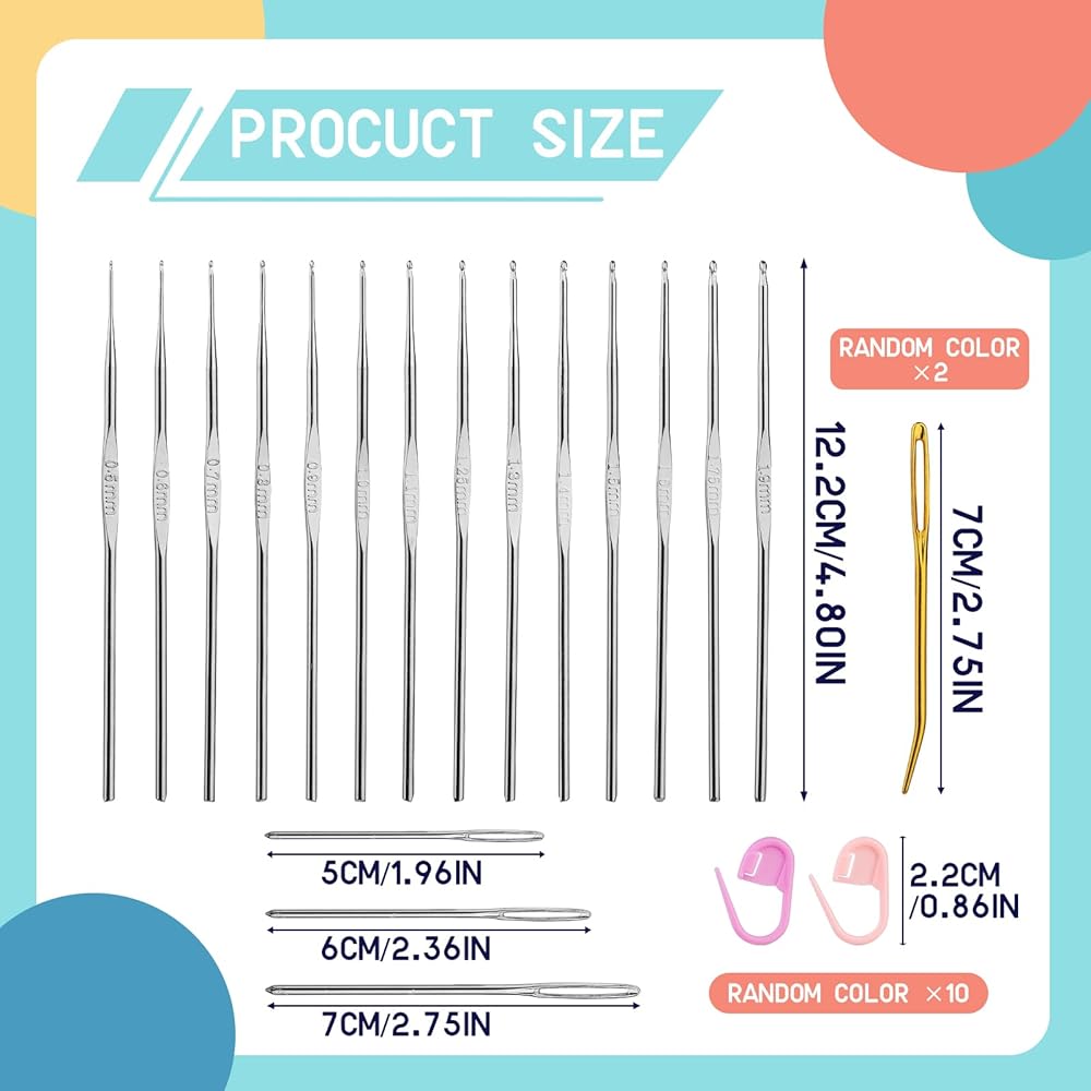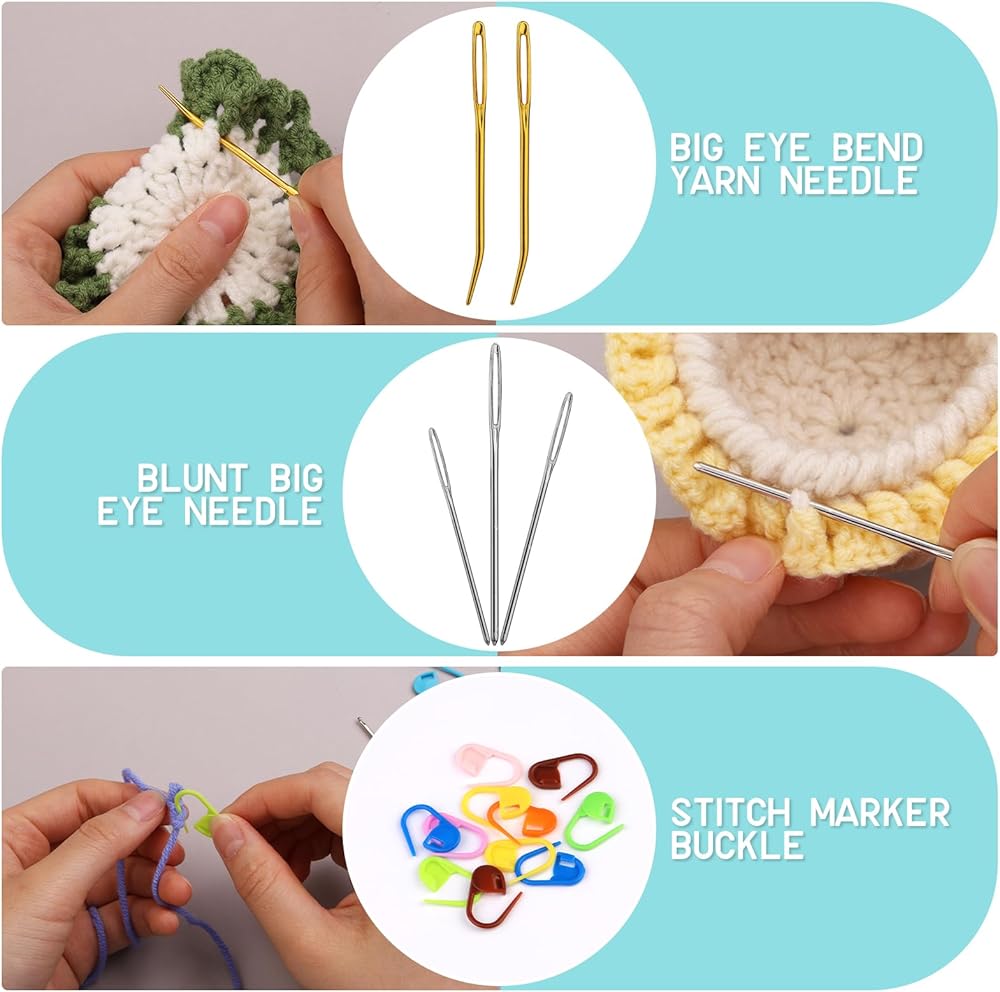 Superior Quality -- Our crochet hooks are made of high-quality iron, with a deep hook throat, it is easy to hook the yarn for quick crochet. The matching sewing needle has a large eye, and the thick and fine yarn can be easily passed through, which is very suitable for stitching at the end of crochet projects. Stitch marker clips are also an essential accessory in the crochet process.
