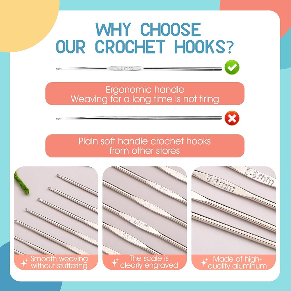 Enjoy Crochet Projects -- crochet hooks, very suitable for crochet of ornaments, shawls, bags, dolls or other lace crafts, the matching large eye yarn needles play an important role in the stitching, this is a simple and perfect set crochet kit combination. Choose us and start your awesome crochet project!