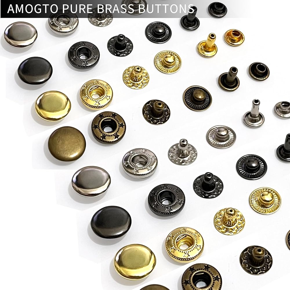 12.5mm Metal Rivets Leather Rivets Kit,6 * 6 8 * 8 Double Cap Brass Rivets Leather Studs with Tools for Leather Repair and Crafts, Snaps Press Studs with Heavy Duty Leather Snap Fasteners Kit