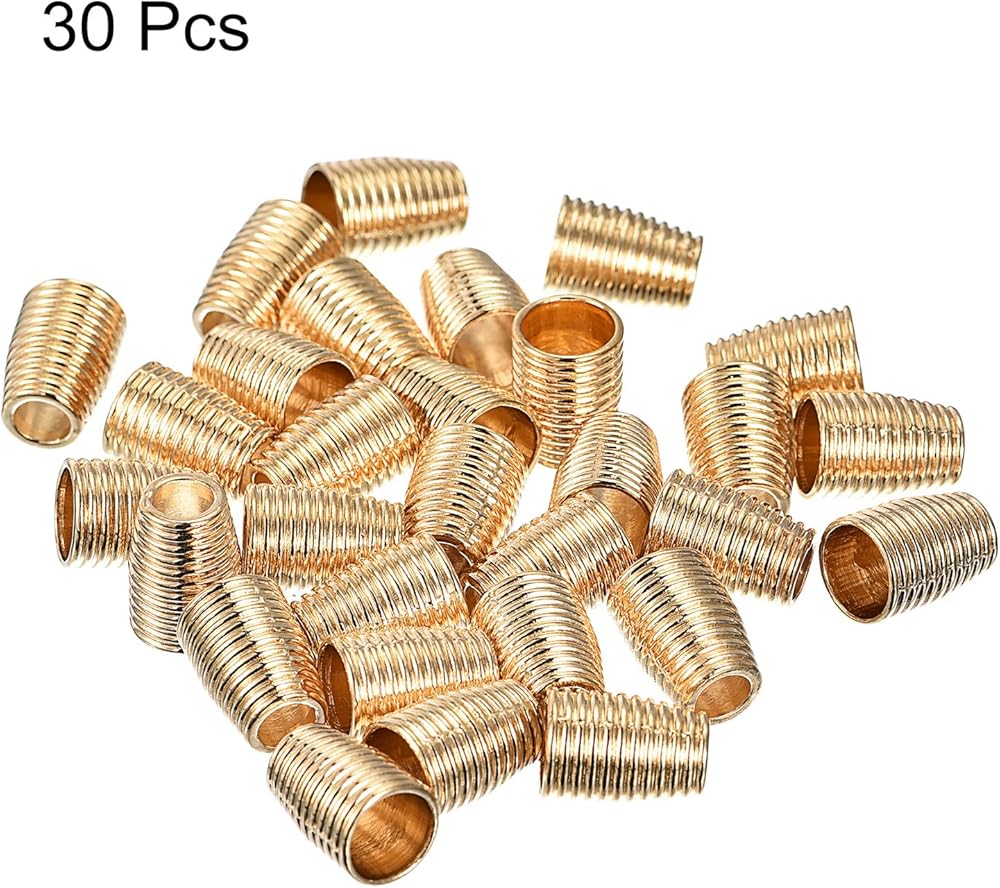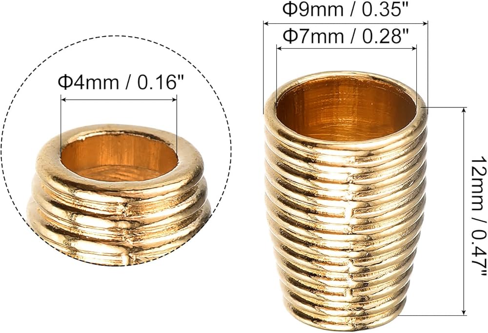 [Rope Locks Fastener] - The package comes with 30pcs of gold metal bell stopper in 7mm/0.28" large hole dia., 4mm/0.16" small hole dia. and 9mmx12mm/0.35"x0.47" width and height that can meet your daily needs.