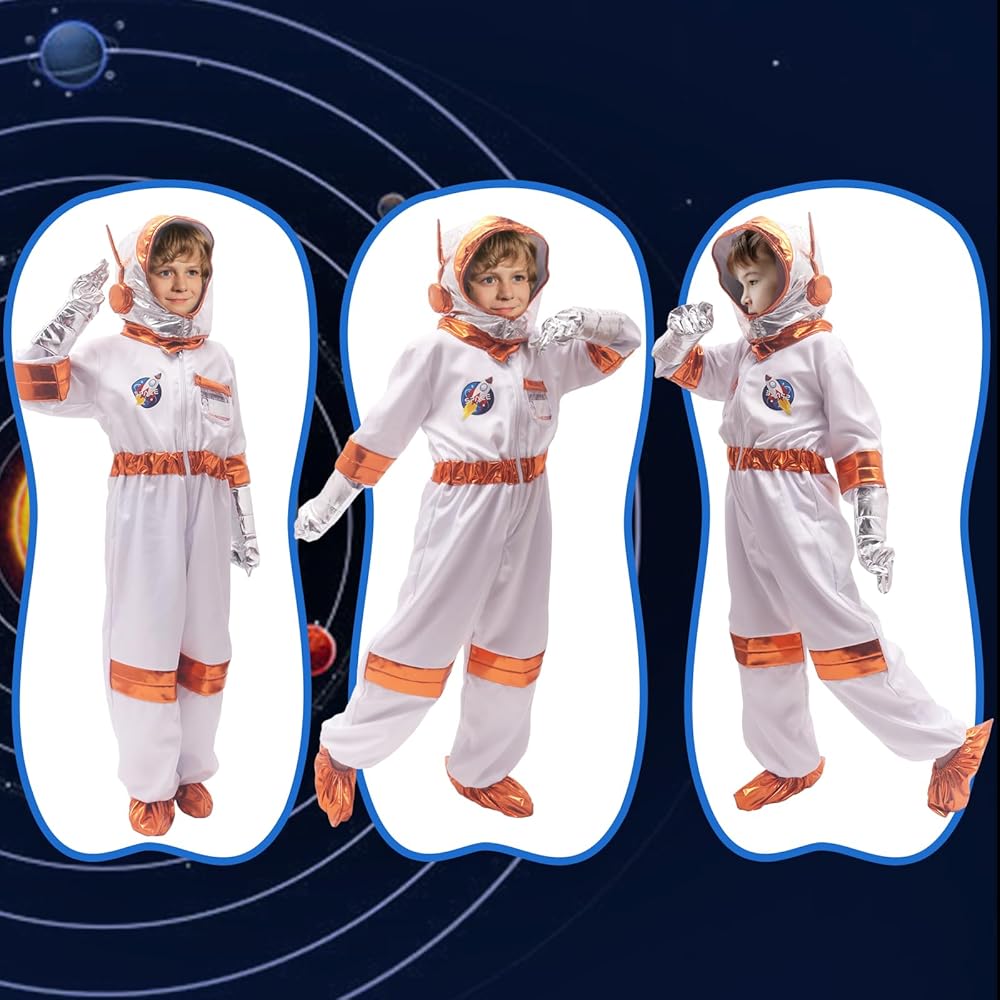 Halloween Astronaut Costume for Kids - Our white classic astronaut costume set includes a helmet, space jumpsuit, shoes covers and gloves. Just like a real astronaut ready to blast off into space. Encourage your child's passion for space exploration and adventure with this amazing astronaut costume.