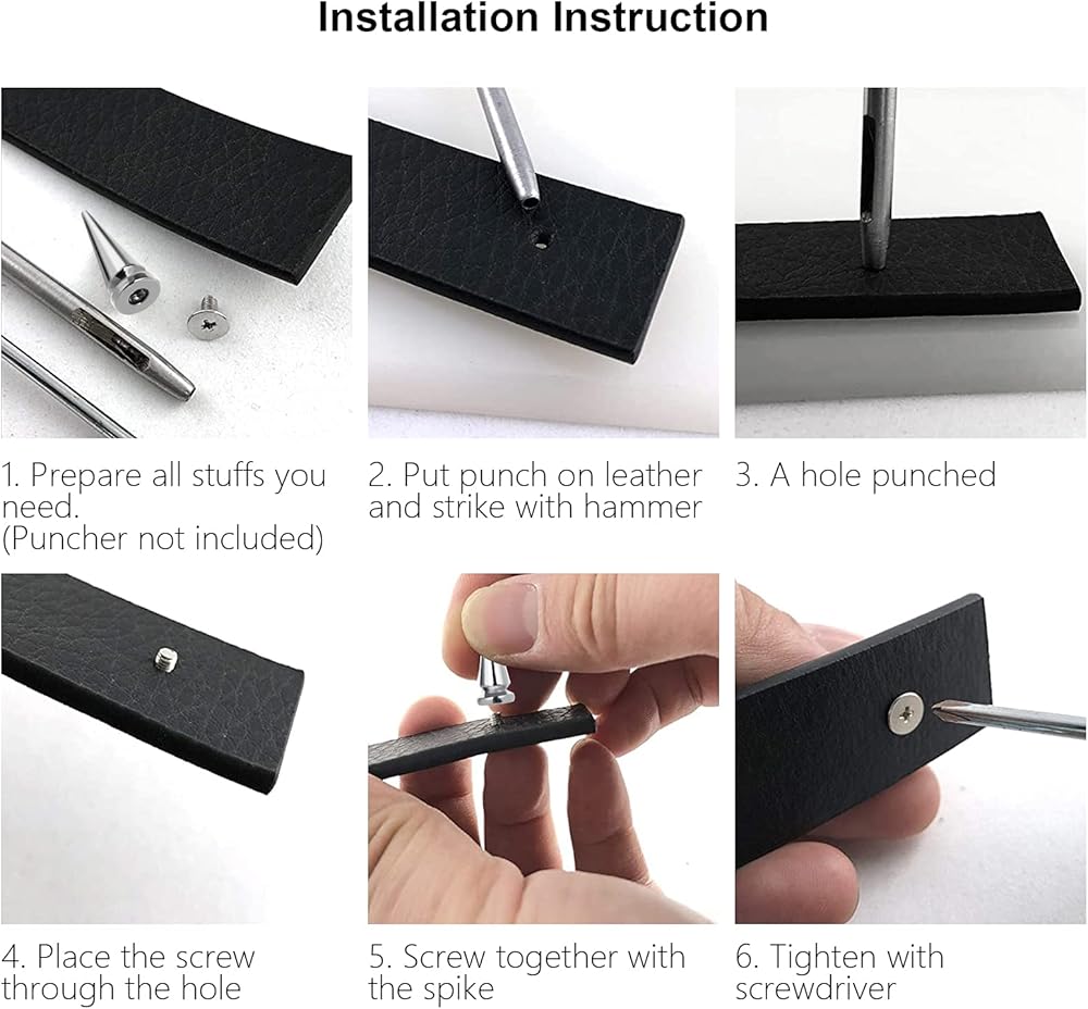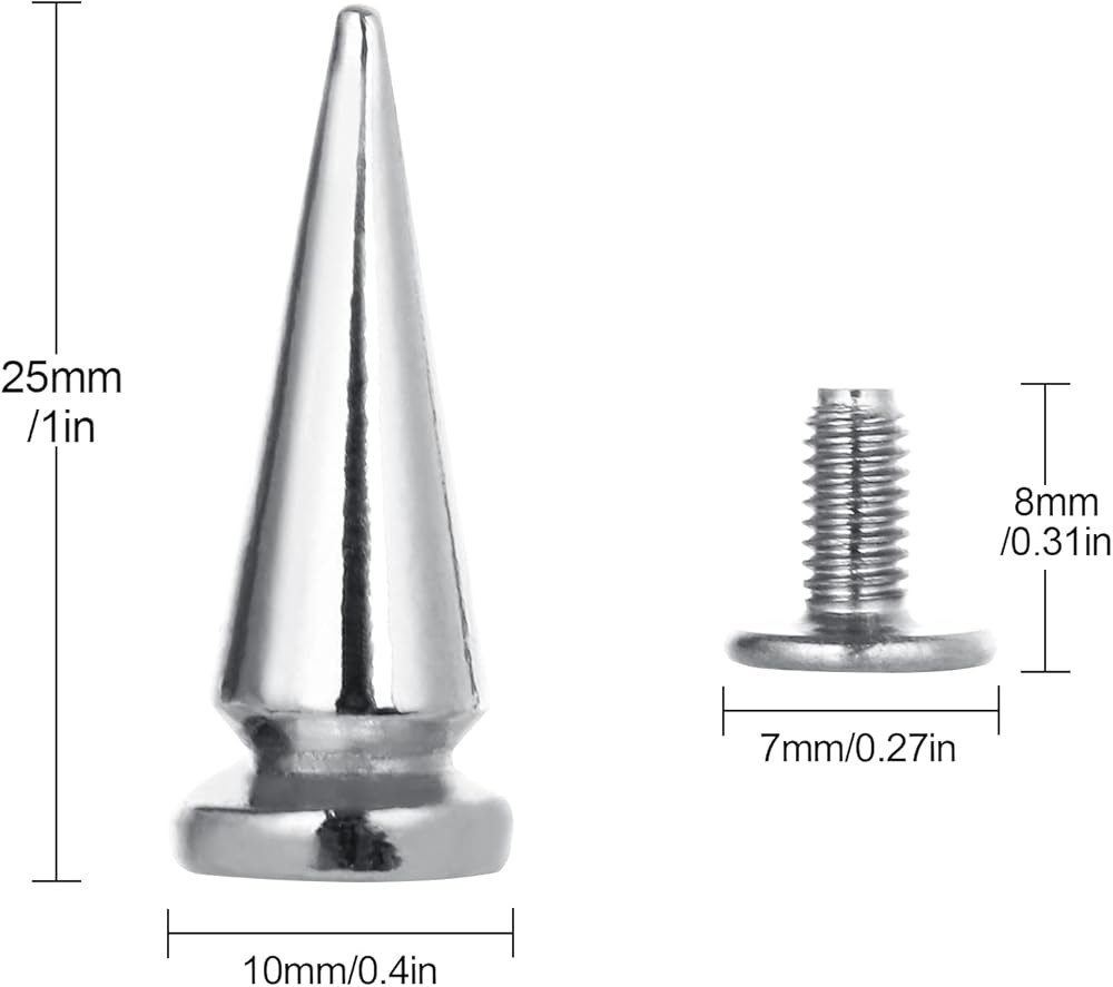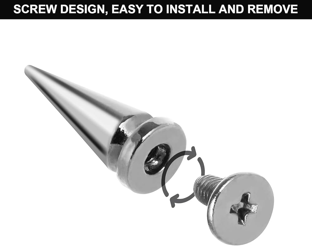 [ Easy to Use ] -- These cone spikes studs are easy to install, Punch a hole then tighten the screws and the cone spikes firmly on the clothes / leather. Enjoy the Fun of DIY crafts!