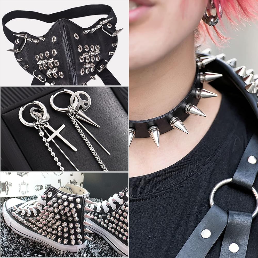 [ Punk Style Rivets ] -- These silver cone spikes is great for crafting and DIY, you can use the spikes for clothing, bags, shoes, belts, jacket, dog collar, etc, can be used on leather and fabric materials.