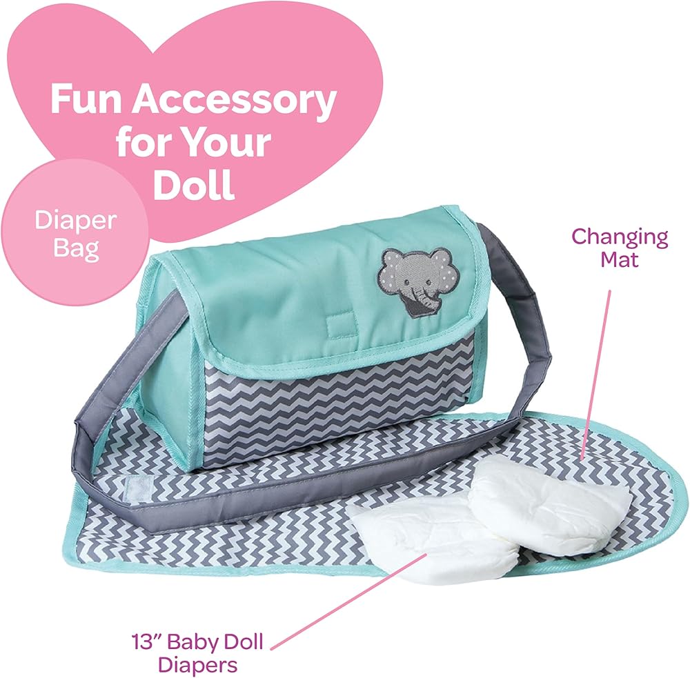 Fits Your Favorites: Specifically designed to accommodate 13-inch baby dolls, this diaper bag ensures compatibility with a wide variety of your child's cherished companions. Whether it's a BathTime Baby or a doll from the PlayTime collection, this accessory set is versatile and accommodating.