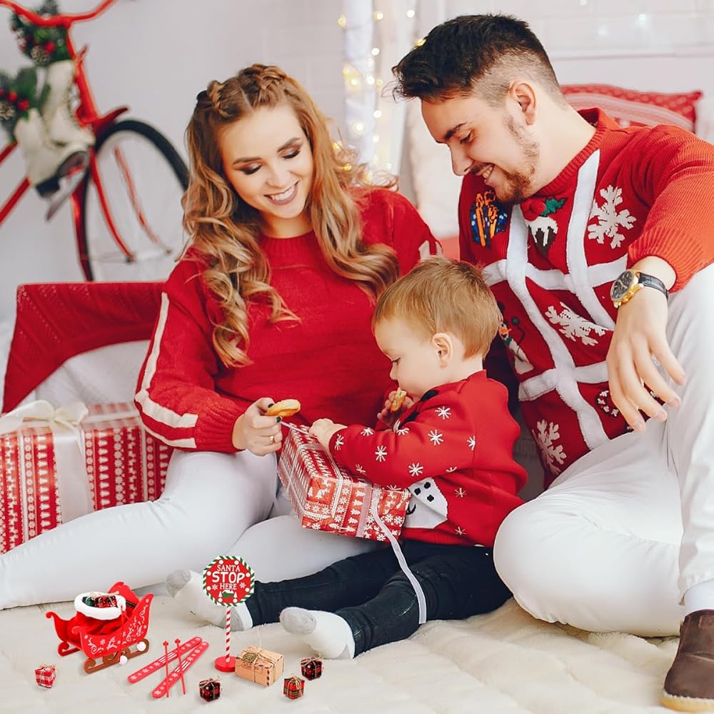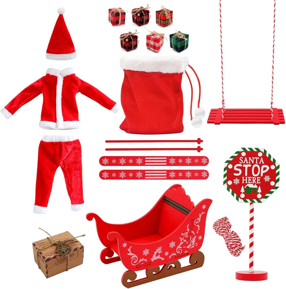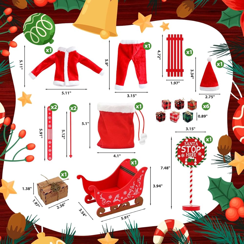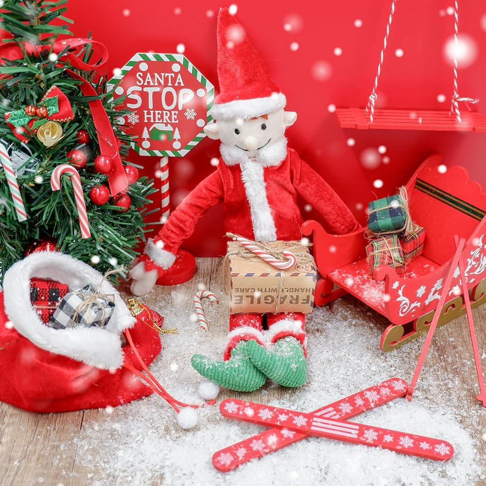 Christmas Elf Accessories - 18Pcs Elf Doll Outdoor Accessories Include Elf Christmas Outfit Sledge Snowboard for Elf Dollhouse, Xmas Elf Clothes and Accessories Gift for Kids, Red