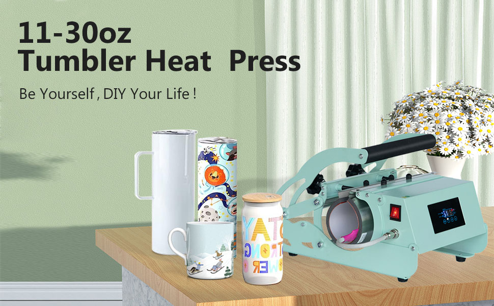 【All in One Sublimation Tumbler Heat Press】The tumbler press heat machine sublimation is with a 10.6in(27cm) length detachable heating attachment, and the diameter range is 2.75-3.26 in. The tumbler mug press is widely suitable for 12-30oz straight skinny sublimation tumblers, 12-30oz glasses, 11-16oz can coolers, mugs, and many other straight water bottles.