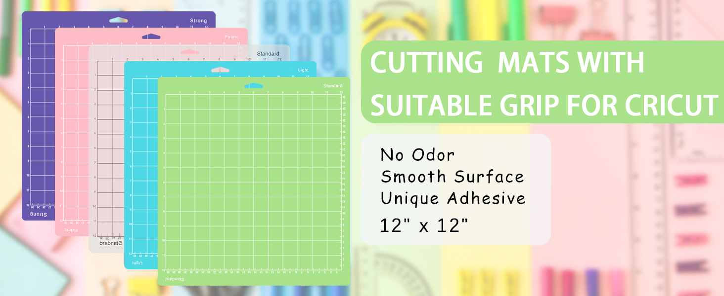 4 viscosity:Gwybkq 12x12 variety cutting mats for Cricut Explore One/Air/Air 2/Maker, including eight different viscosity levels,five standard,one light,one strong and one fabric cutting mats.