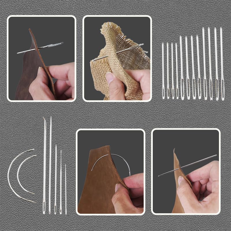 ✨【Wide Range of Uses】This leather crafting kit goes beyond leather applications, serving as an essential repair and sewing companion for diverse materials and projects. It excels in handling carpets, coats, tents, cushions, mattresses, bags, dolls, accessories, as well as fabrics like denim, canvas, waterproof cloth, and more. The leather making kit provides practical and multifunctional DIY tools, making it an essential set for both professionals and beginners. Whether working with leather or e