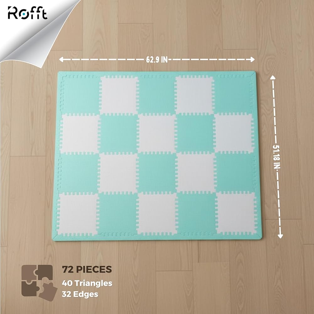 Little fun times Play Mat for Baby Large 72 Pieces, Assembled Total 64 x 64 inch 28,4 SqFt, Interlocking Floor Puzzle, EVA Tiles Playmat for Toddler and Kids, Two Colors Design with Edges.