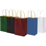 Paper Gift Bag Size: This 110 GSM basis weight kraft paper contains handles and has a measurement of 5.25 inches Length, 3.25 inches Weight, and 8 inches Height with 3.5 inches handles.