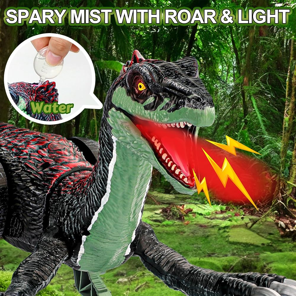【Roaring Dinosaur Toy with Light & Spray】This remote control walking dinosaur toy imitates the roaring sounds of Therizinosaurus. Spraying water mist from the dinosaur's mouth, with red lighting effects as if the dinosaur is spitting fire, it adds to the fun and exciting visual effects of the toy, and attracts kids' attention for lessening the screen time. Let's go on a Jurassic adventure.