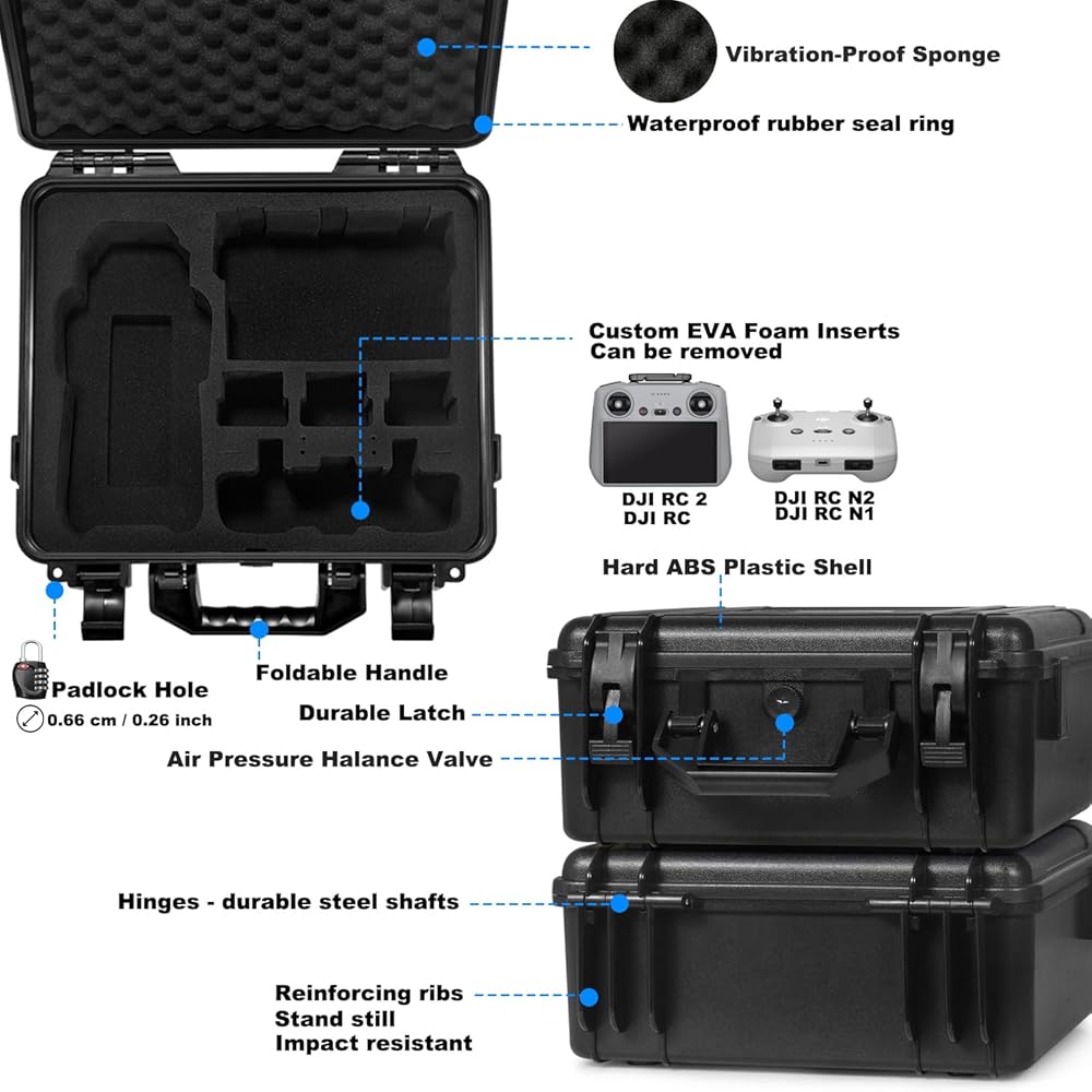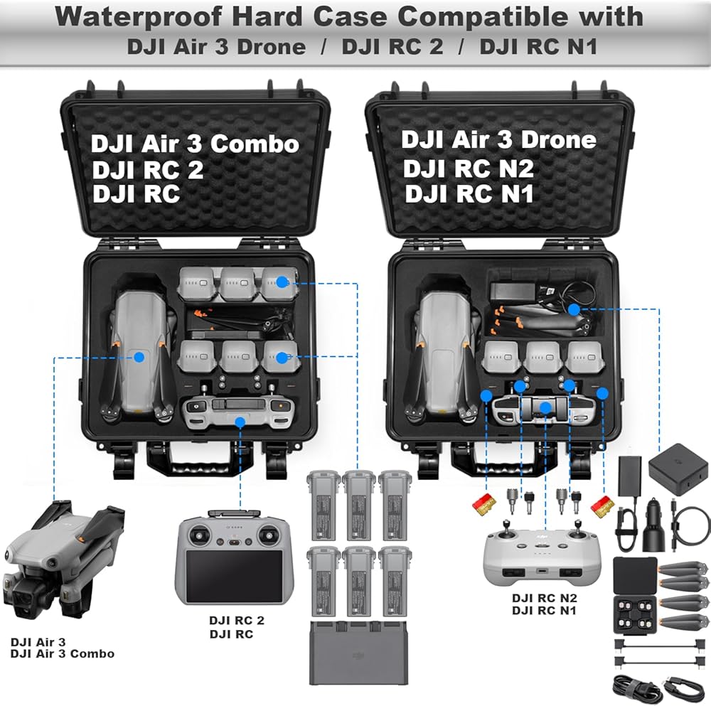 【Strong Protection】IP67-Waterproof & Dustproof.Weight: 1.9kg(4.2 lbs),Dimensions:33.5 x15.5x 31 cm (13.2 x 6.1 x 12.2 inches),Protecting you dji air 3 drone accessories on the airplane,boat,motor bike.Ideal for traveling or home storage. Suitable for outdoor environments such as deserts, beaches, rain forests, snow mountain, etc.